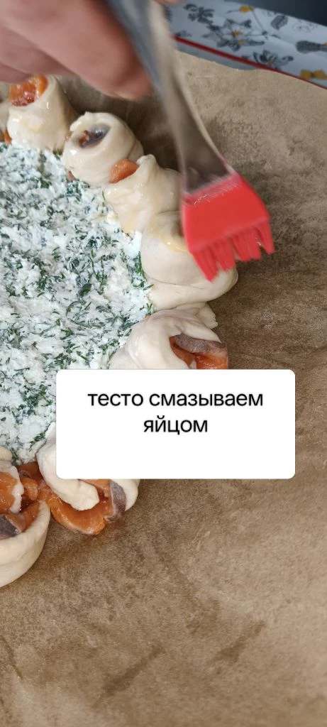 Смазываем яйцом, посыпаем сыром и в духовку на 180° минут на 30.