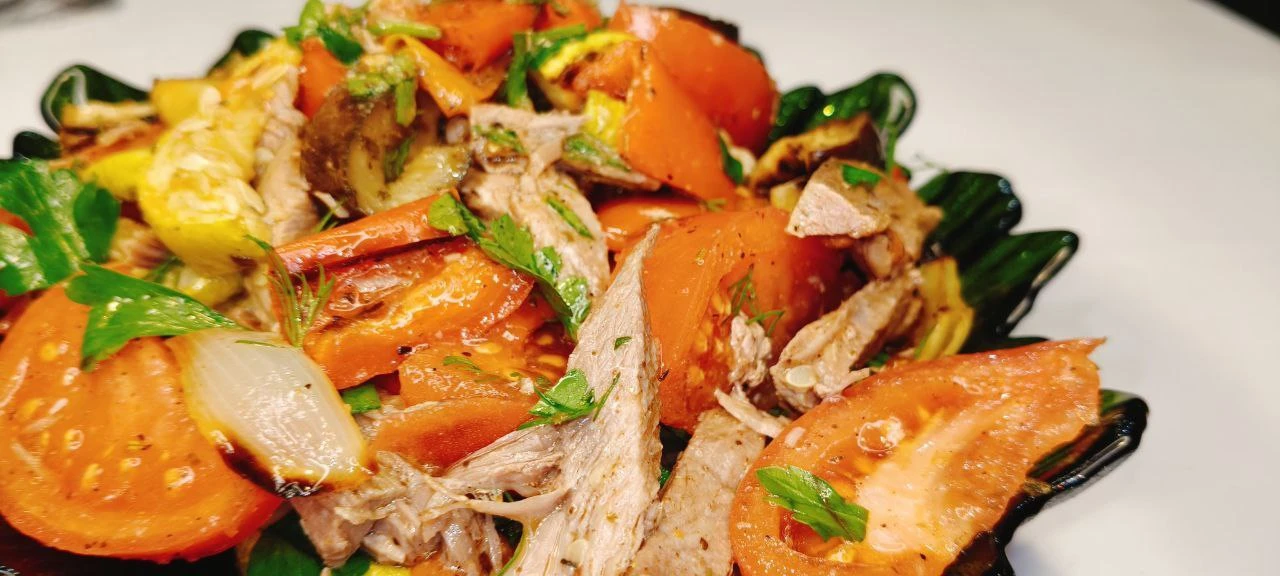 Вместо помидора огурец, а вместо лука чеснок. Огонь тоже!