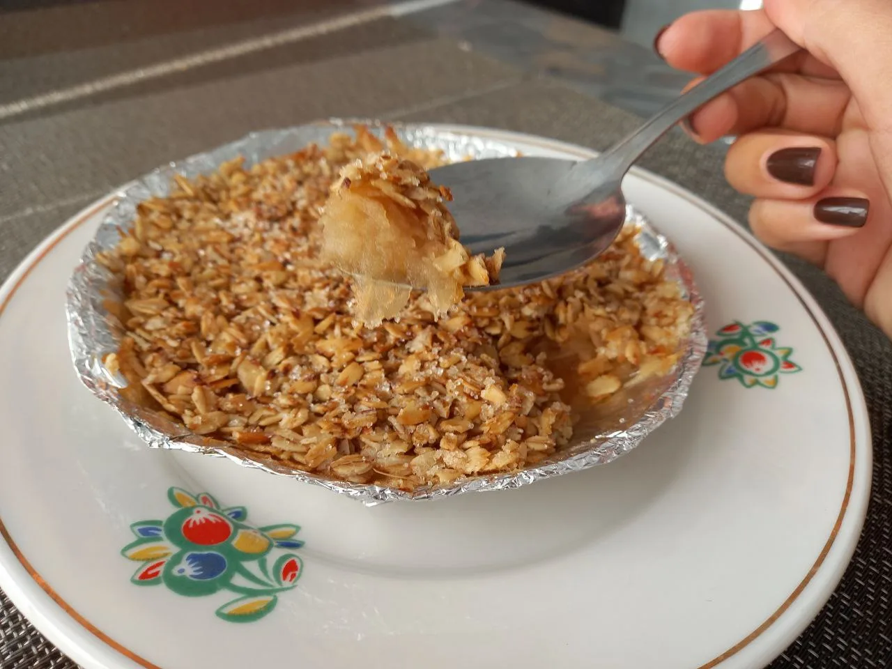 Получается нежнейшее яблочное пюре и хрустящая овсянка сверху☺️