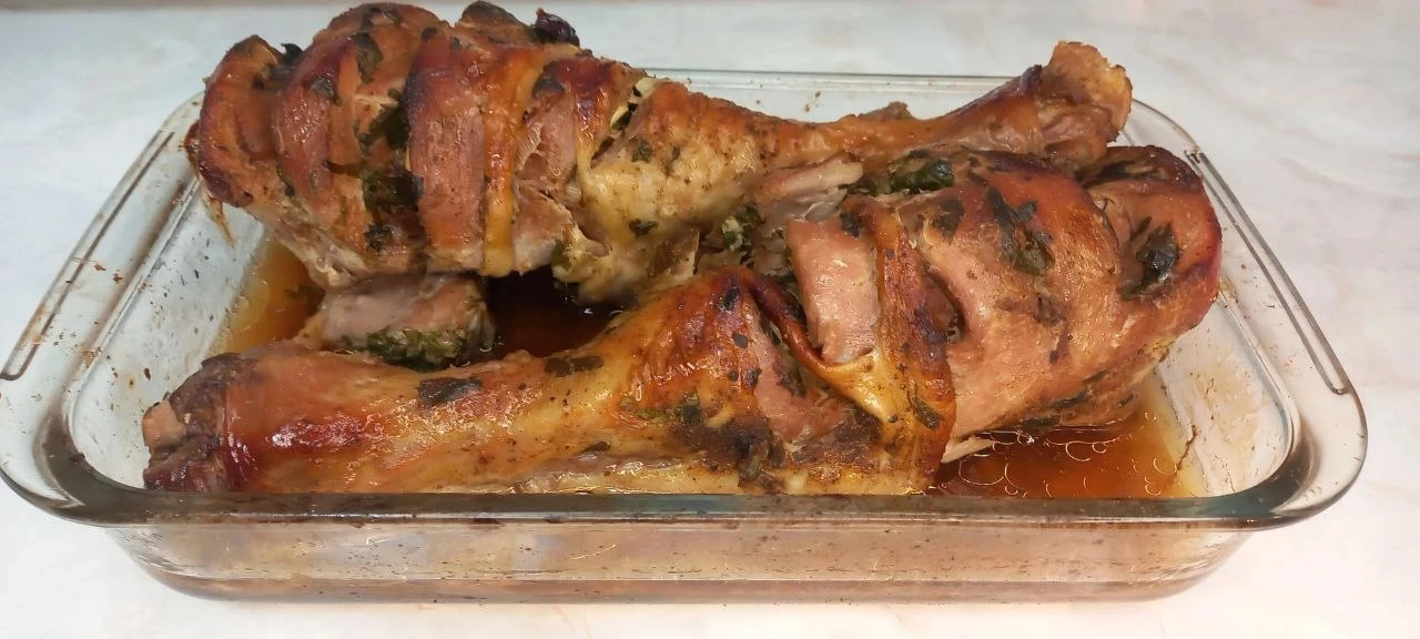 Надеваем поверх формы рукав для запекания и отправляем в духовку разогретую до 180 градусов примерно на полтора часа. Смотрите по духовке и размерам голени👌