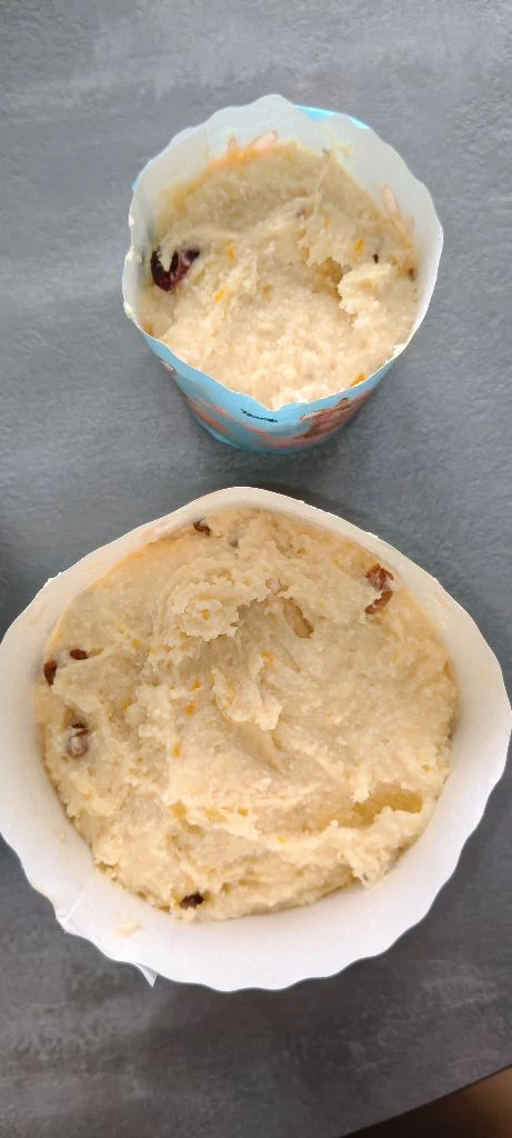 4. Выложите тесто в формочки (бумажные или силиконовые), заполняя их на 2/3.