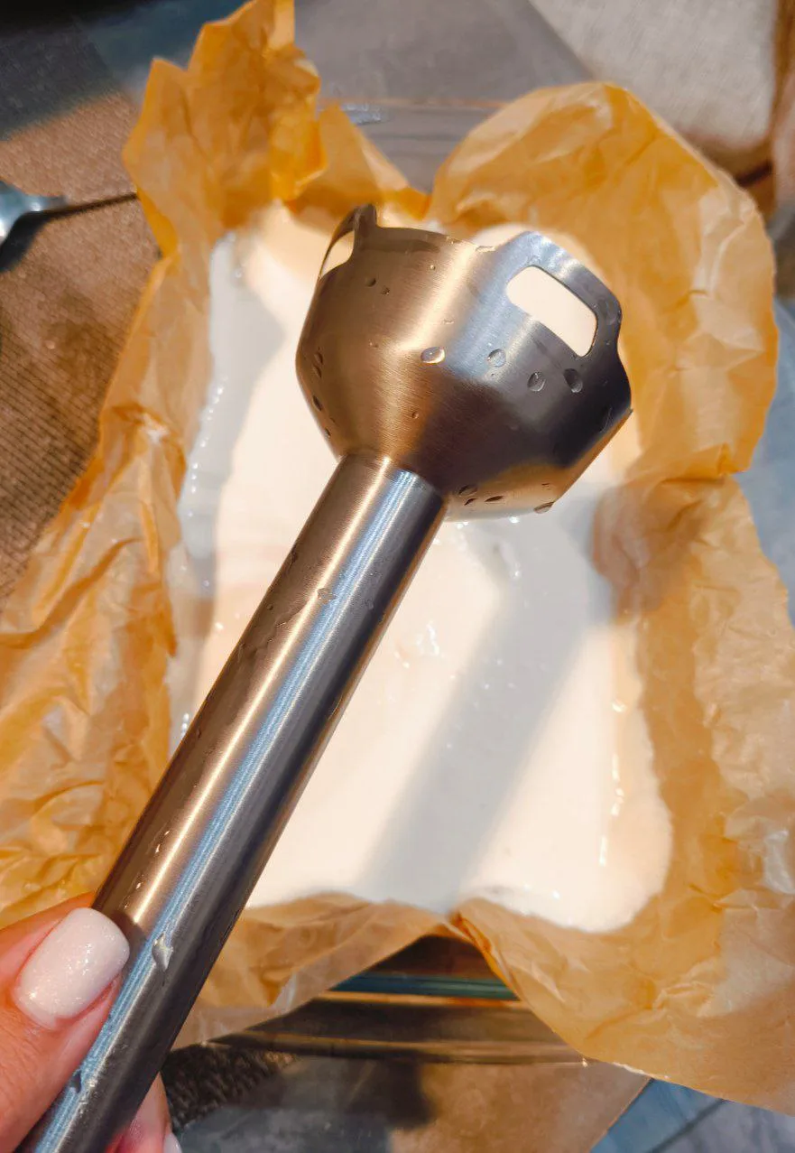 Блендерим тщательно, чтобы не было крупинок, нам нужна воздушная и однородная масса.