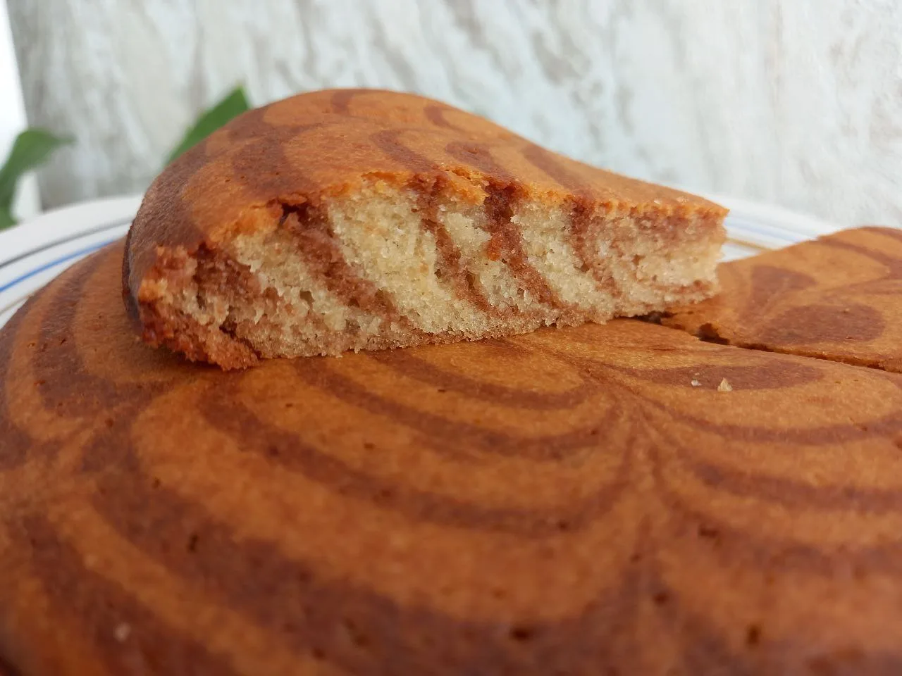 Делим тесто пополам, в одну часть добавляем какао и перемешиваем венчиком, в другую часть 0,5 стакана муки, перемешиваем. Форму смазываем сливочным маслом и выкладываем тесто слоями (в комментарии закинула видео, как из этого всего сделать зебру). Отправляем в духовку при температуре 170 градусов на 40 минут. #десерт
