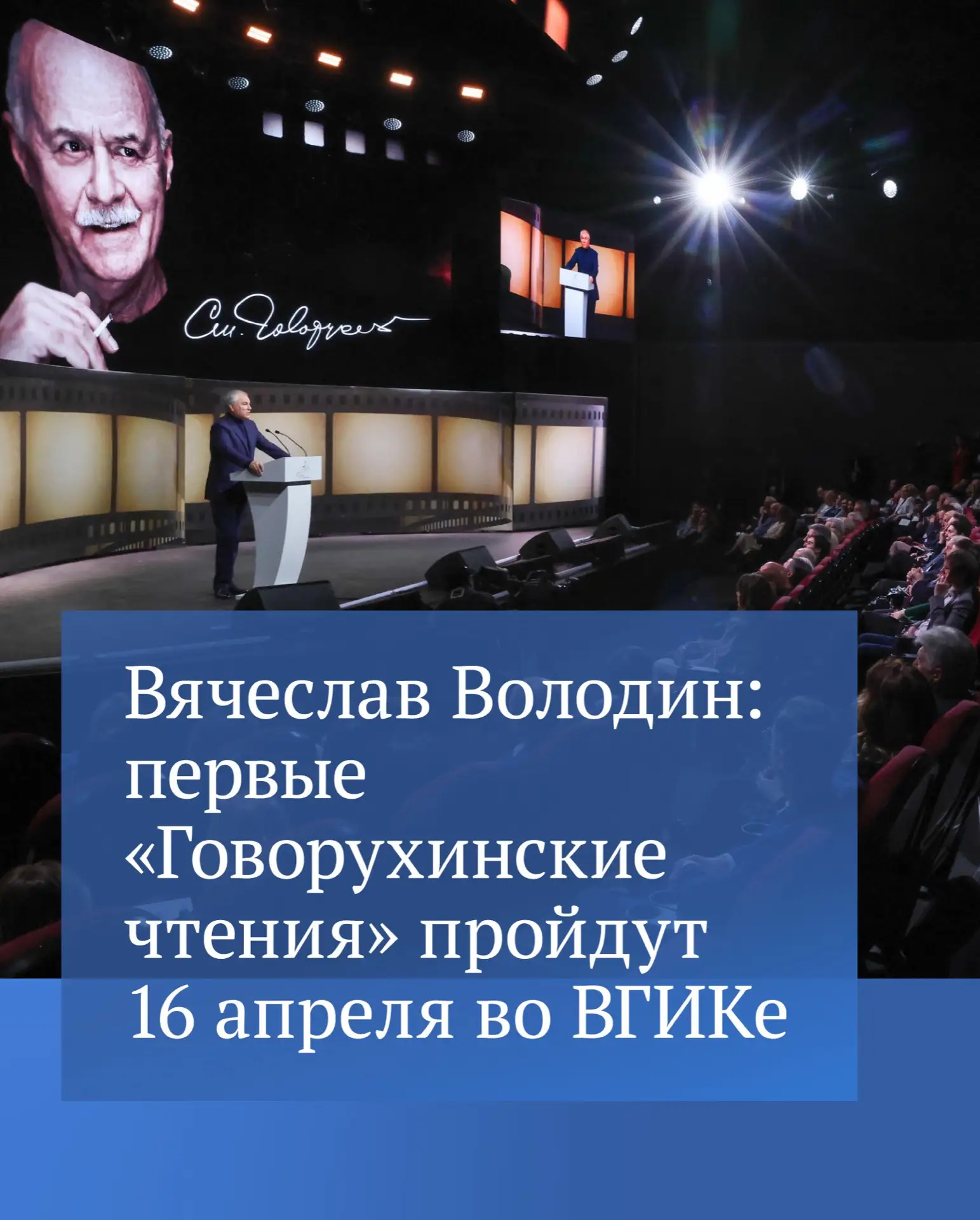 В Госдуме открылась выставка «Художник. Человек. Гражданин», посвящённая 90-летию Народного артиста РФ, депутата ГД Станислава Говорухина. Одними из первых её посетили Председатель Госдумы Вячеслав Володин, депутаты от всех политических фракций, представители культурного сообщества и члены оргкомитета по увековечиванию памяти выдающегося режиссёра и политика. Среди экспонатов — редкие кадры из архива Станислава Говорухина, снимки со съёмочных площадок, личные вещи из его рабочего кабинета.
