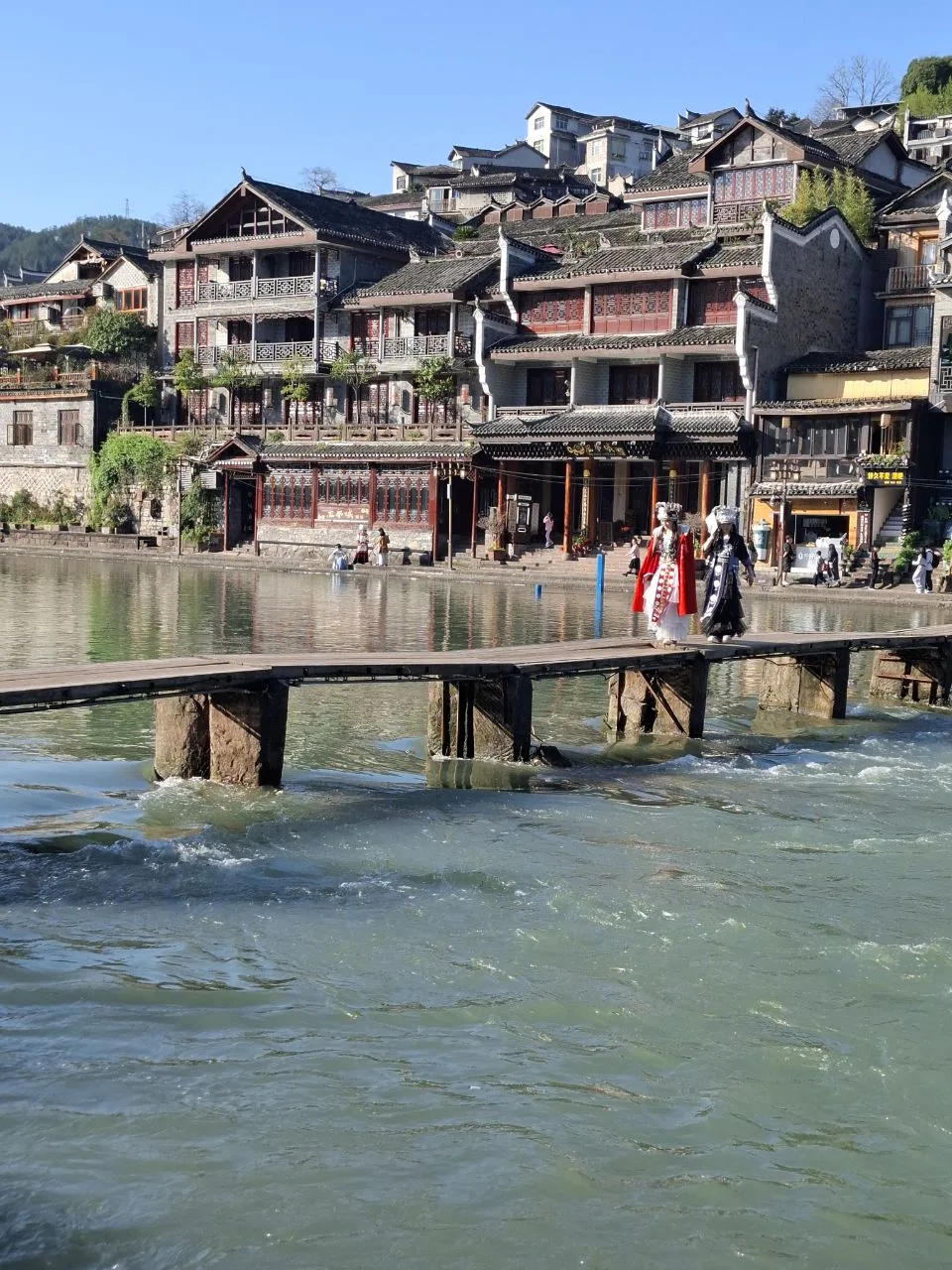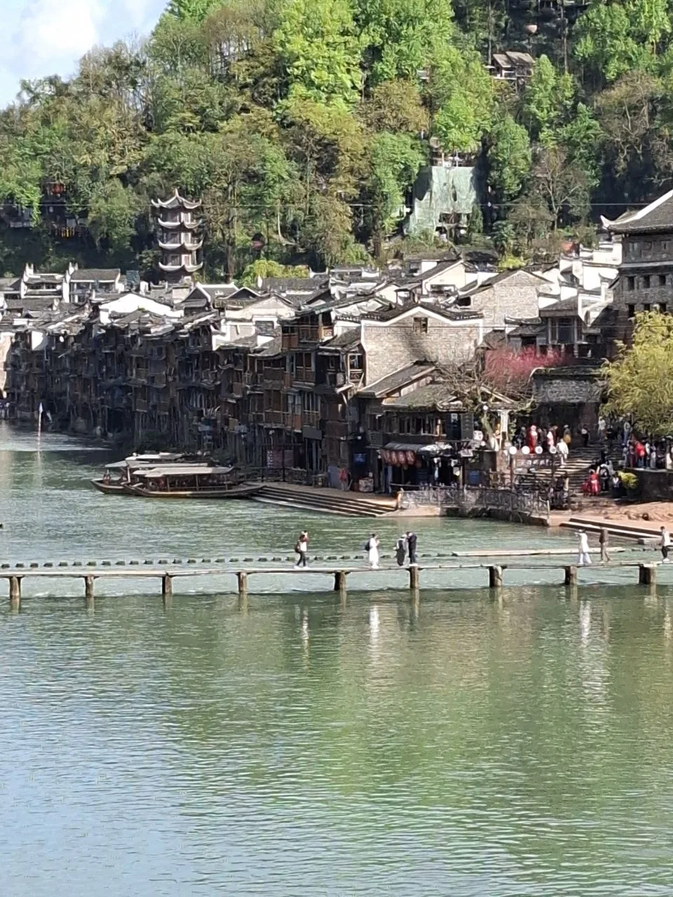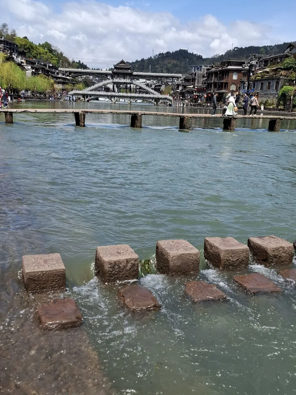 📍Фенхуан. Видите камни на первом фото? Это «мост» через реку, точнее его небольшой фрагмент. Если не пройдешь по нему - приезд в Фэнхуан не засчитан. 😂