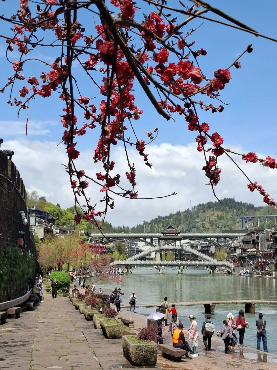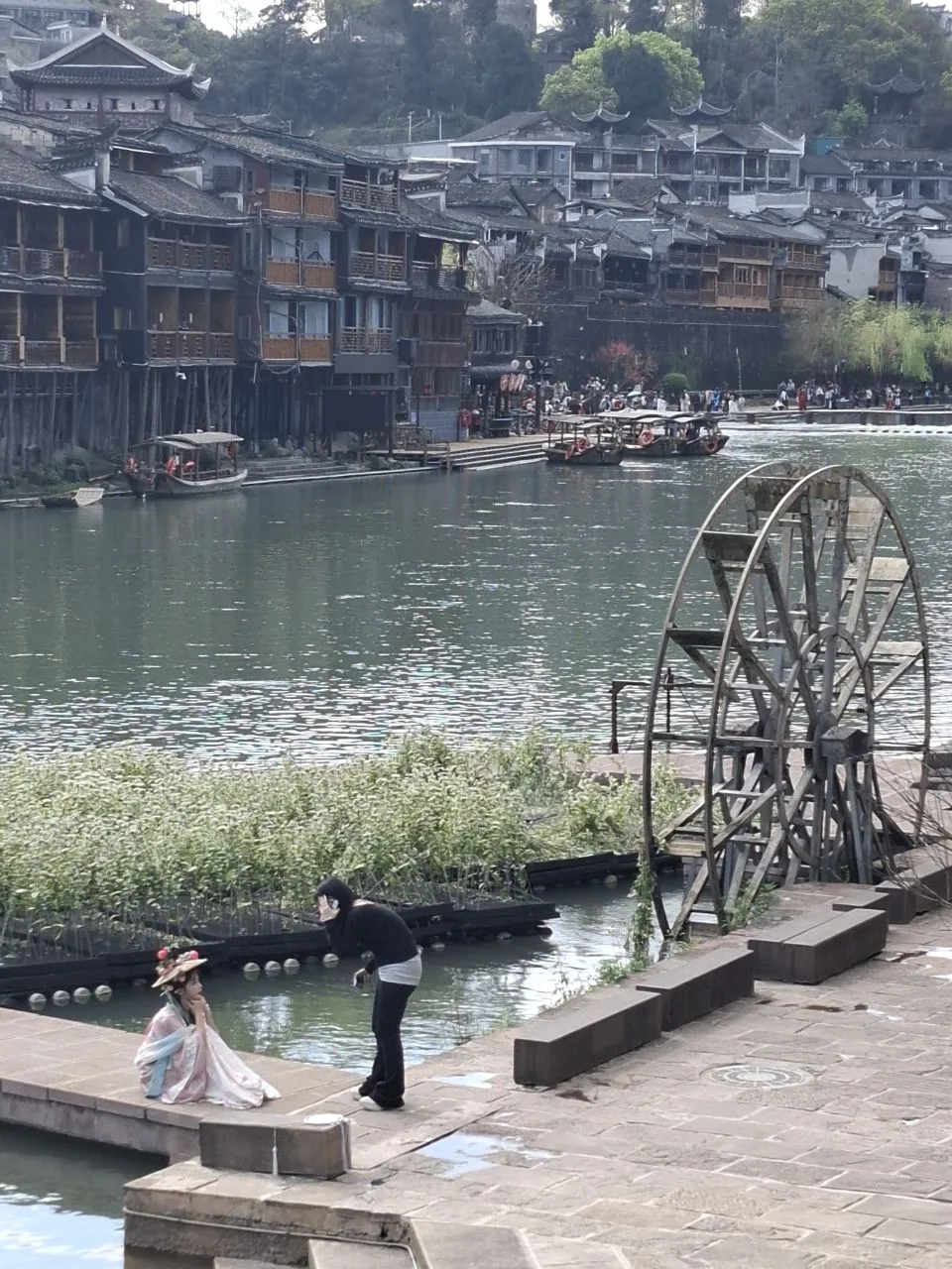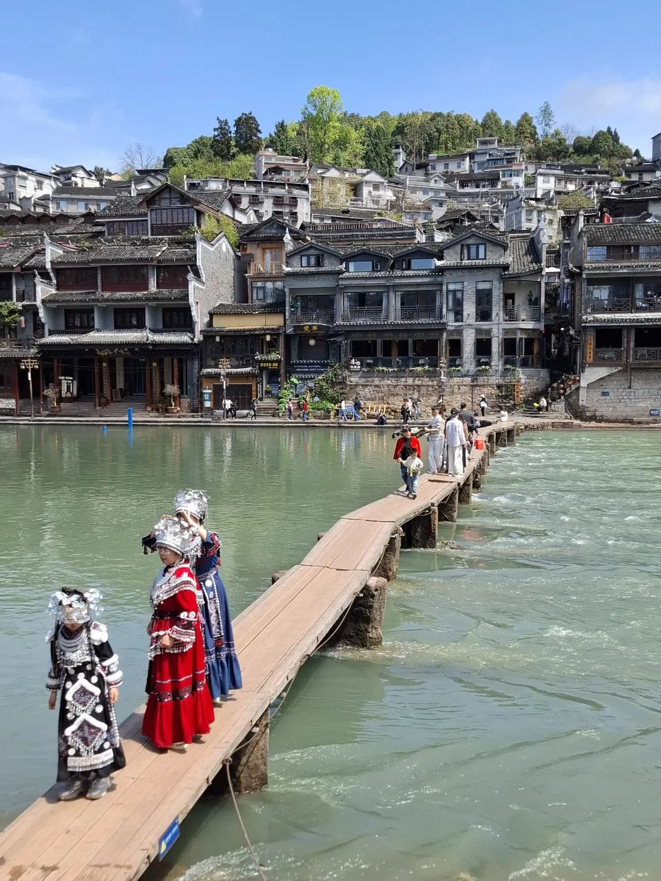 📍Фенхуан. Видите камни на первом фото? Это «мост» через реку, точнее его небольшой фрагмент. Если не пройдешь по нему - приезд в Фэнхуан не засчитан. 😂