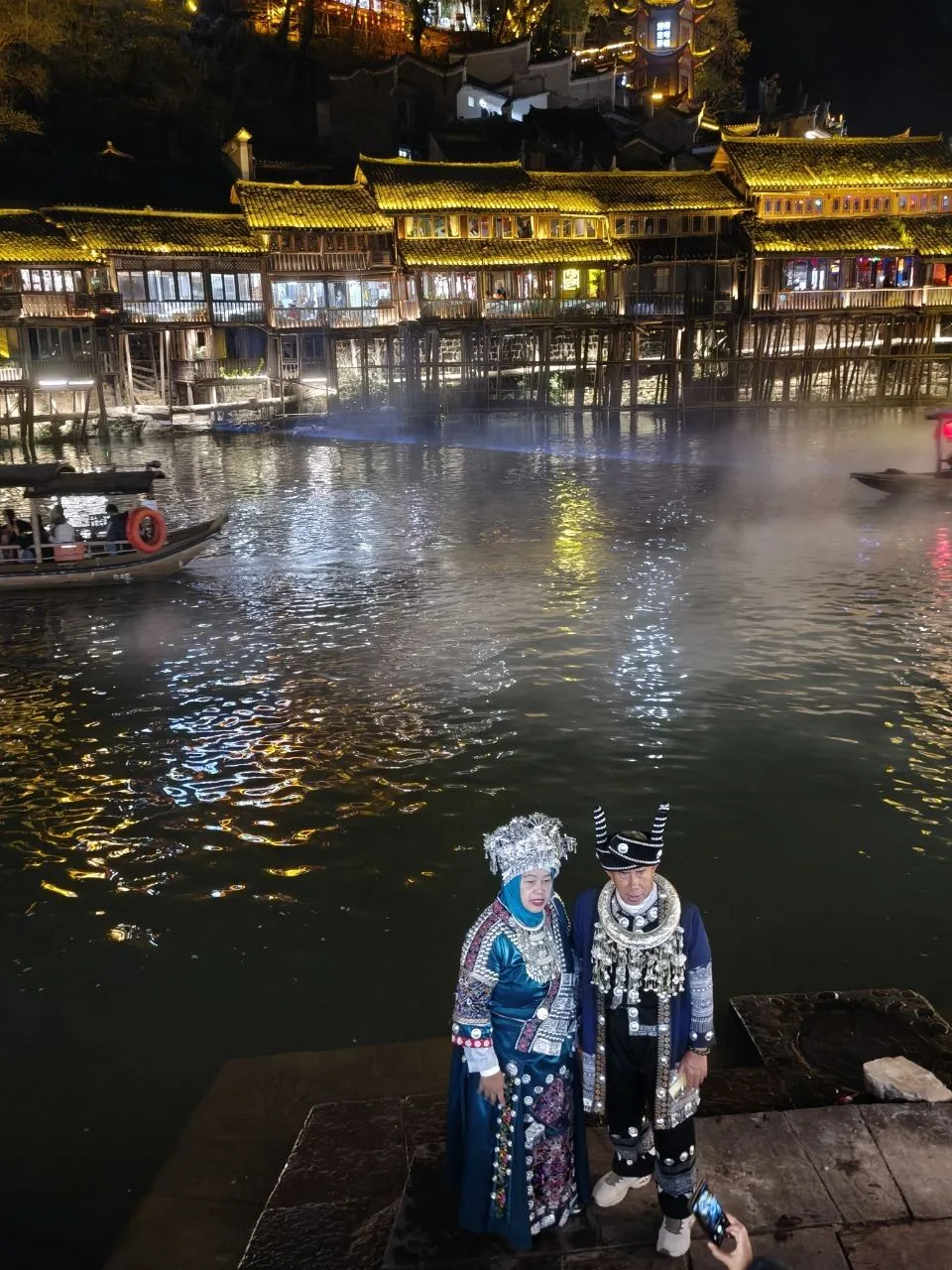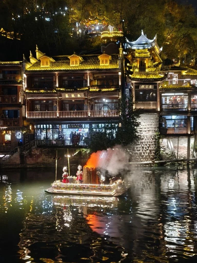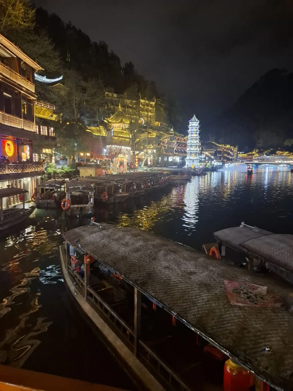 📍Фэнхуан. Хозяйка отеля посоветовала нам речную прогулку в 20.00.
