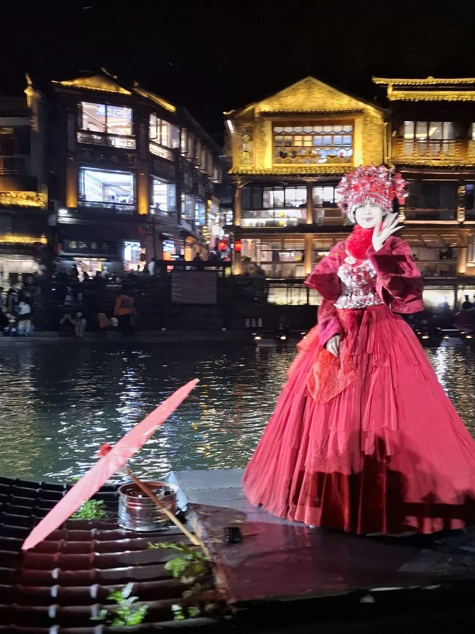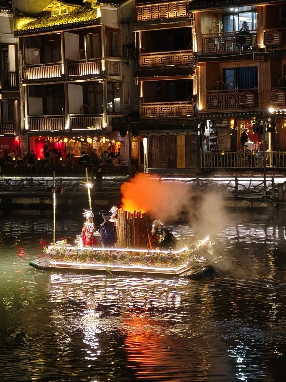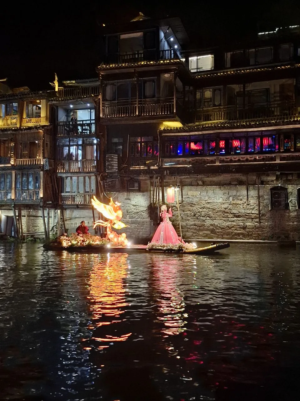📍Фэнхуан. Хозяйка отеля посоветовала нам речную прогулку в 20.00.