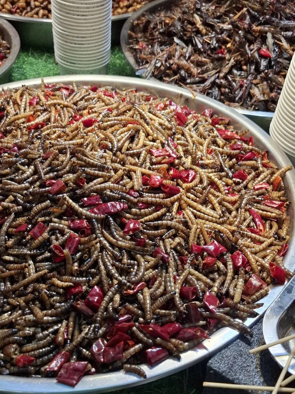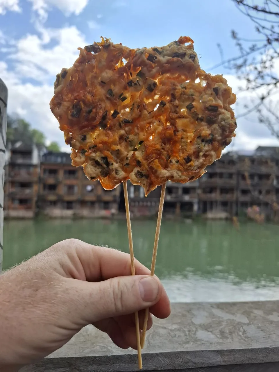 📍Фэнхуан. Очень много странной еды. 😂🙈 ...Маленькие речные креветки в кляре очень пользуются спросом. Мы тоже решили попробовать, заранее попросили, чтобы без остроты. Кадры 5-6. #китай #Азия