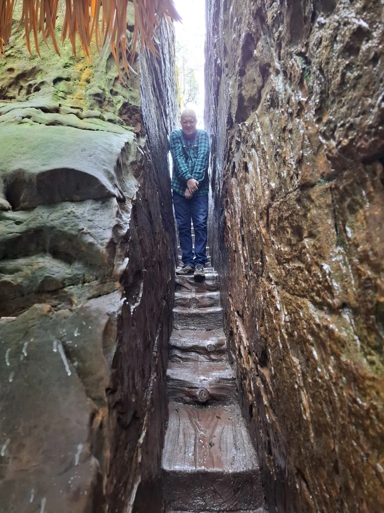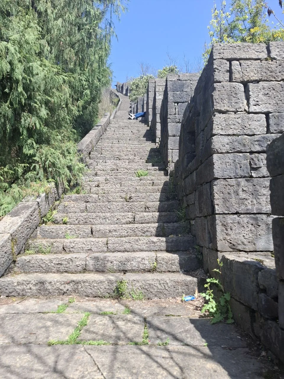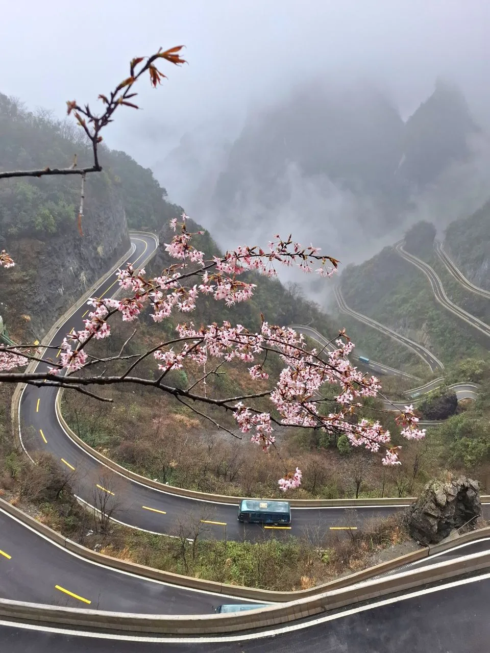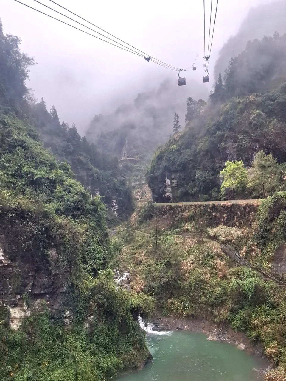 📍Тяньмэнь (кит. 天门山). Приехали утром к Небесным вратам - гигантской арке и ведущей к ней лестнице. А тут дождь, облака, нулевая видимость. Пришлось купить 56-градусного горного вина и запеченных яиц. 🥳🔥 И то, и другое 10 из 10. Ждём, когда выглянет солнце...