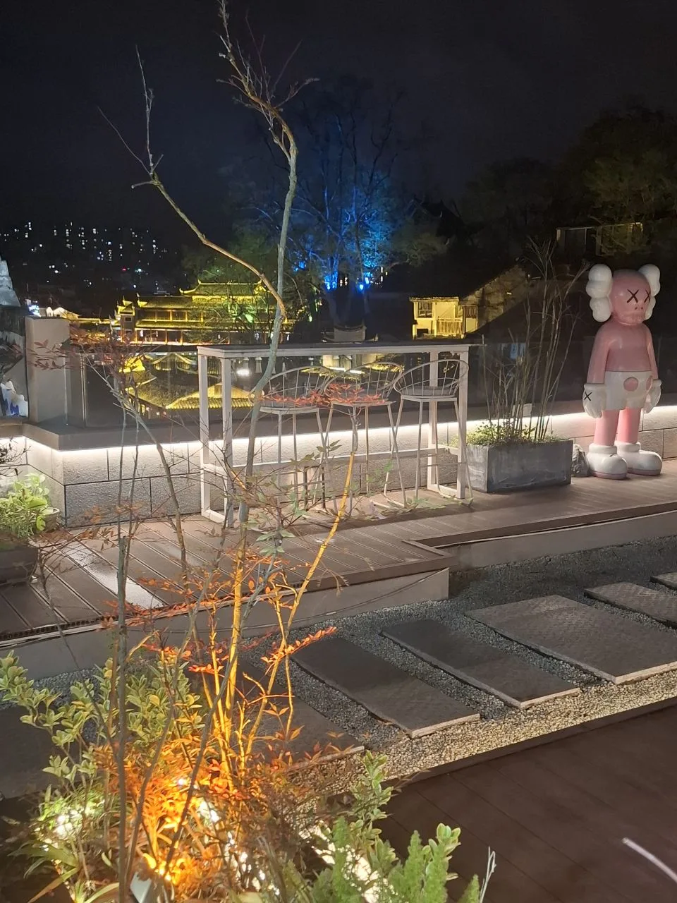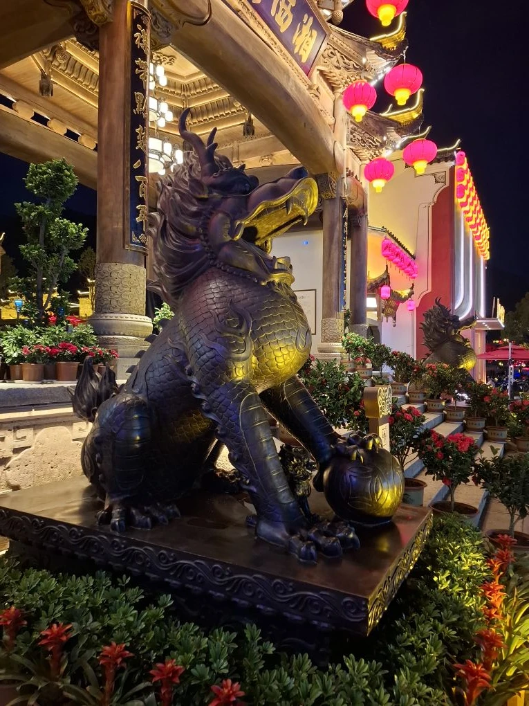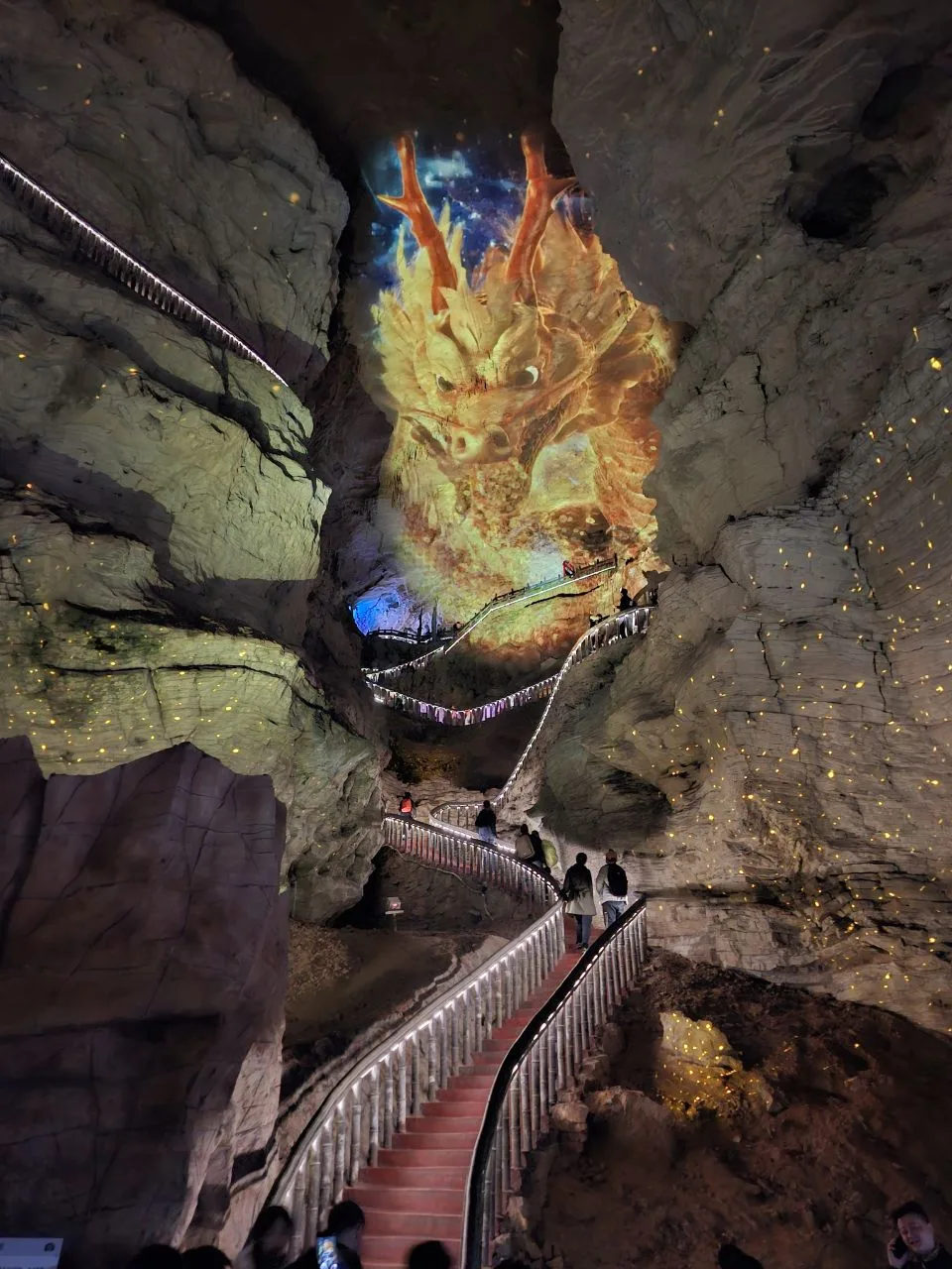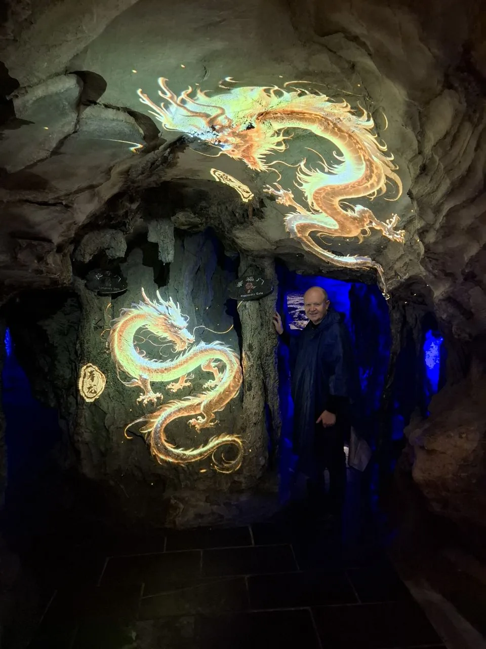Это магия! Пока идёшь, включаются разные короткие световые шоу с участием жёлтого дракона.