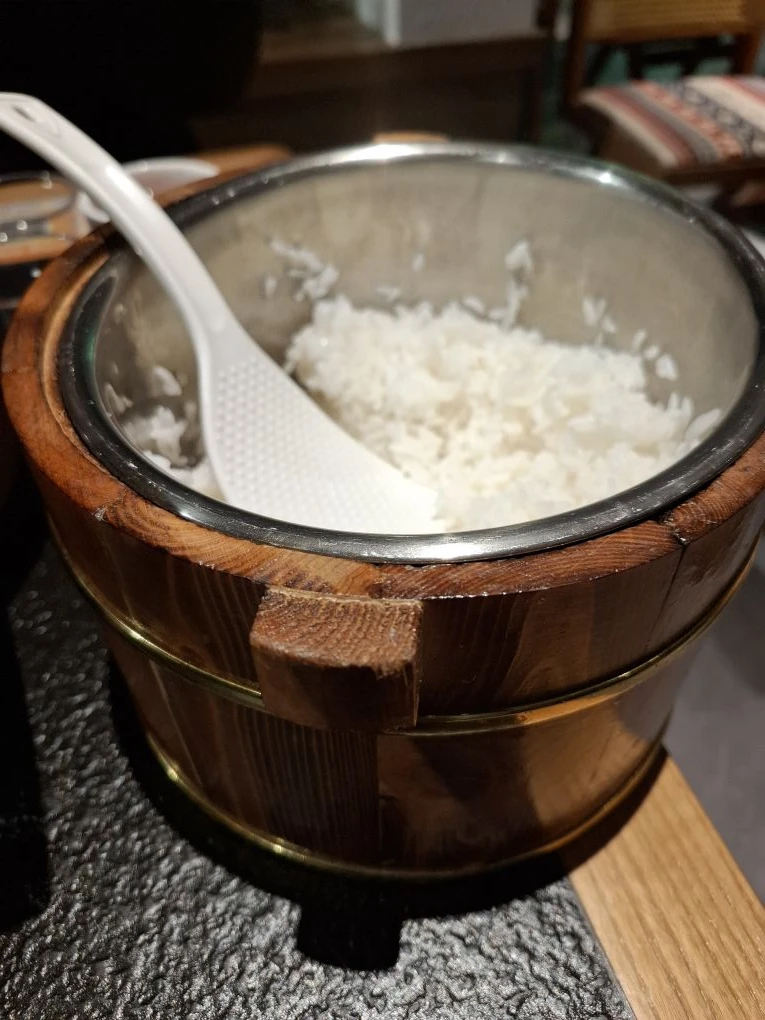 Ведро риса к ужину нам подают стабильно. Сегодня это был комплимент от заведения. 😂 Мы не просили. Чай тоже всегда стоит на столе, можно пить без ограничений (термос в оплётке - это как раз чай).