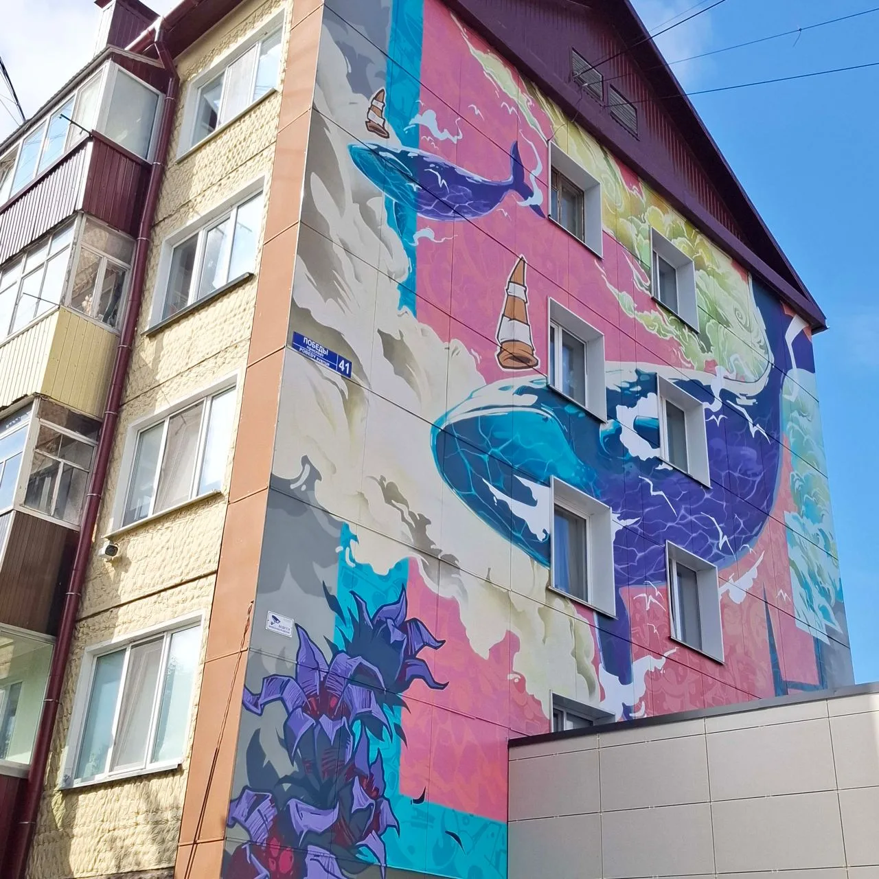 Больше 40 домов Южно-Сахалинска украшены муралами высотой в пять этажей! Это визитная карточка города. Масштабные картины не только делают ярче спальные районы, но и «признаются в любви» к острову Сахалин, в них заложен культурный код. Но понравилось мне далеко не всё... #Сахалин