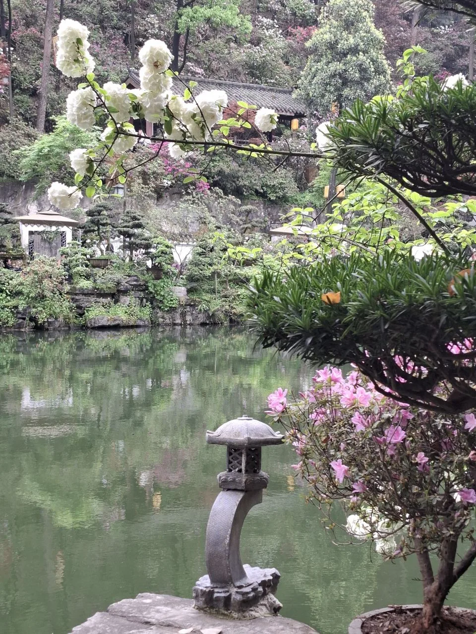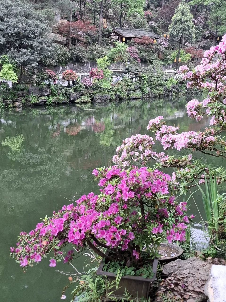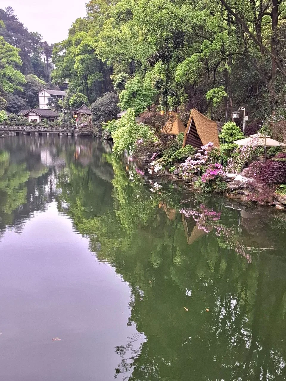📍Чунцин. В двух шагах от Ботанического сада обнаружили озеро с цветущими берегами и чайными домиками. ❤️🌿 #китай #Азия Вход туда бесплатный. Садовникам из Ботанического сада надо уроки ландшафтного дизайна брать у хозяев этого пространства. Оно идеально. Прям пожалела, что не можем там зависнуть, почаёвничать... У нас же самолёт в Пекин сегодня вечером.