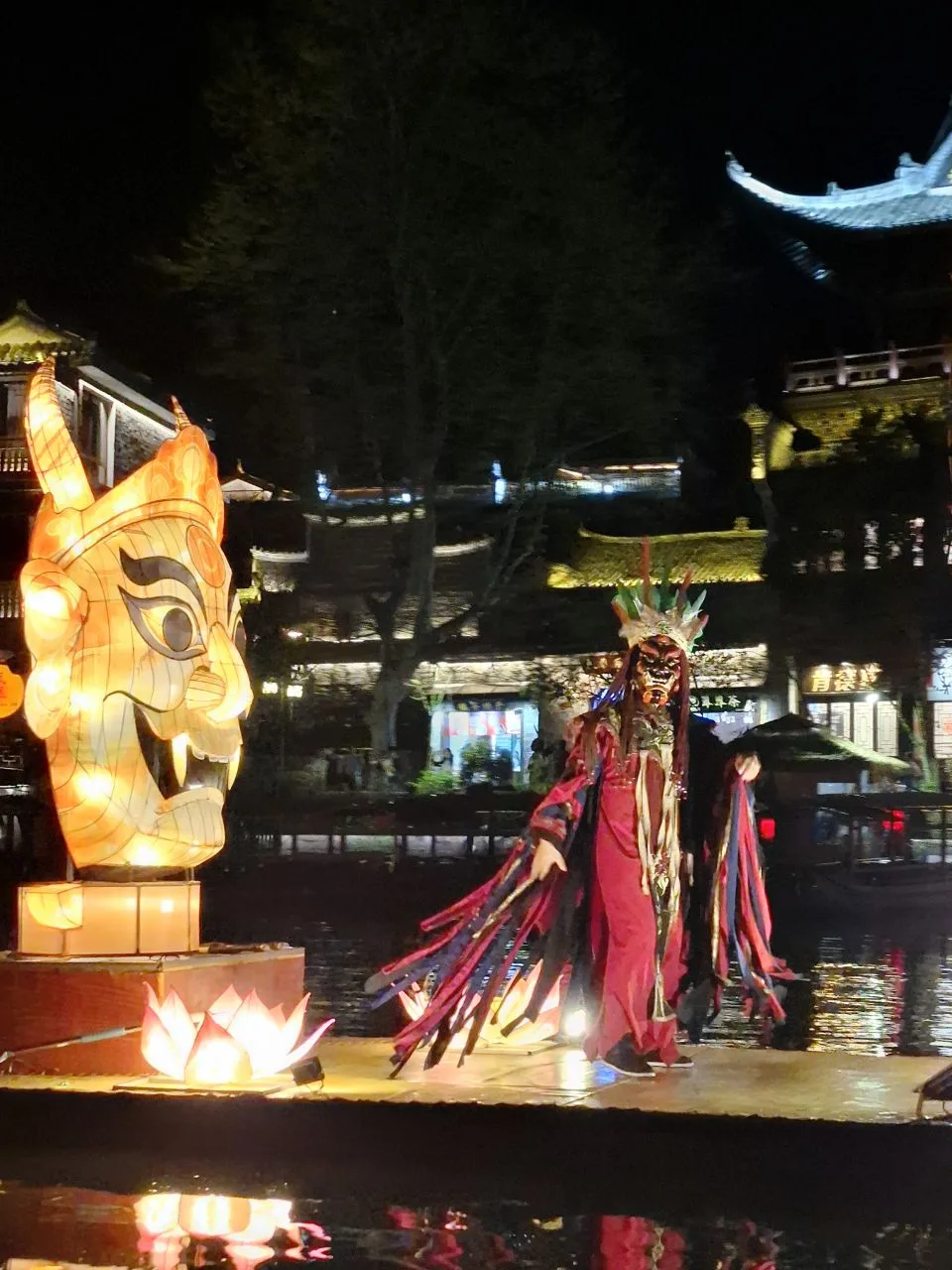 Нас катали на традиционной китайской лодке среди моря огней, принцесс, демонов и другой сказочности. Словами не передать, сколько они всего напридумывали!