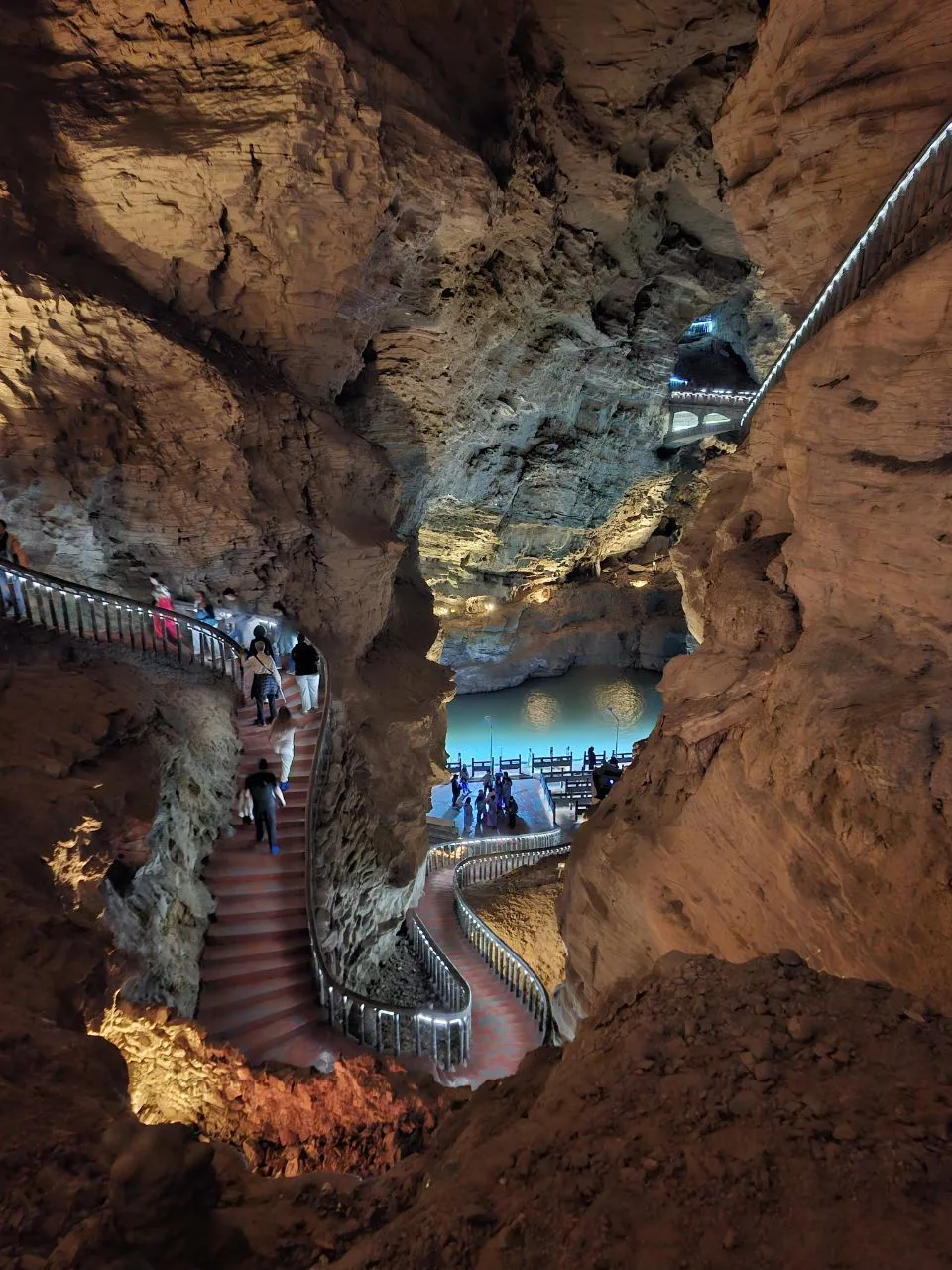 По дну пещеры протекает река, где катают на лодках. Есть несколько подземных озёр с кристально чистой водой.