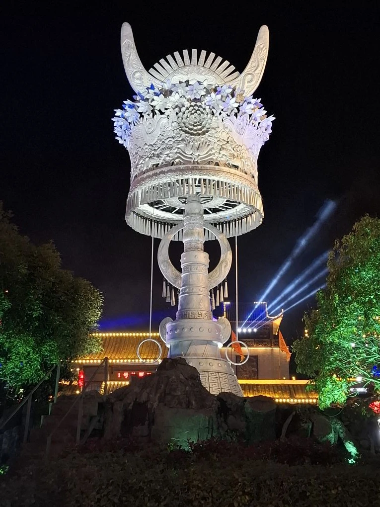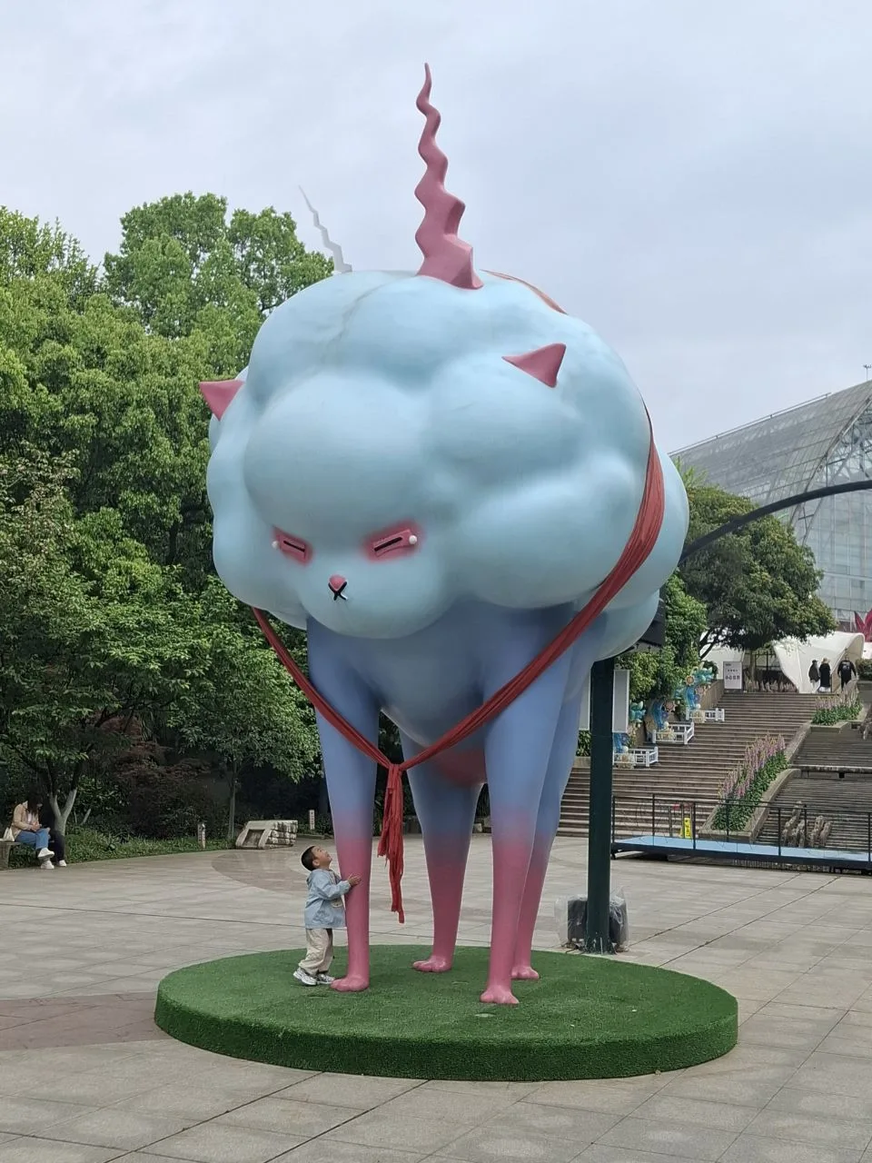 На первой фотке Облачный кот. 😄Согласно описанию на сайте ru.trip.com, за 6-метровой скульптурой скрывается фантастический портал. Вечером сочетание тумана и лазеров создаёт постоянно меняющиеся цвета, что создаёт ощущение путешествия во времени.