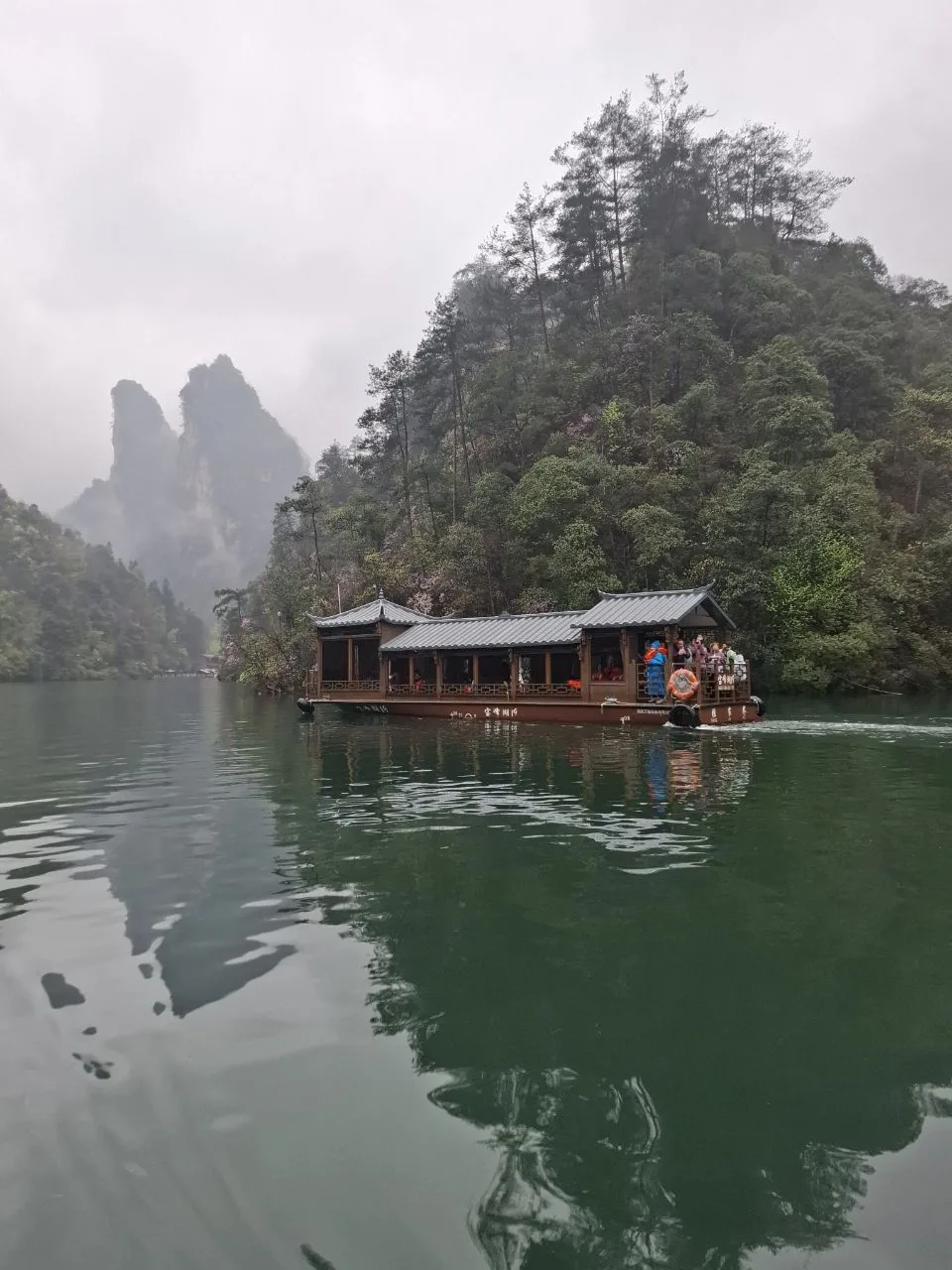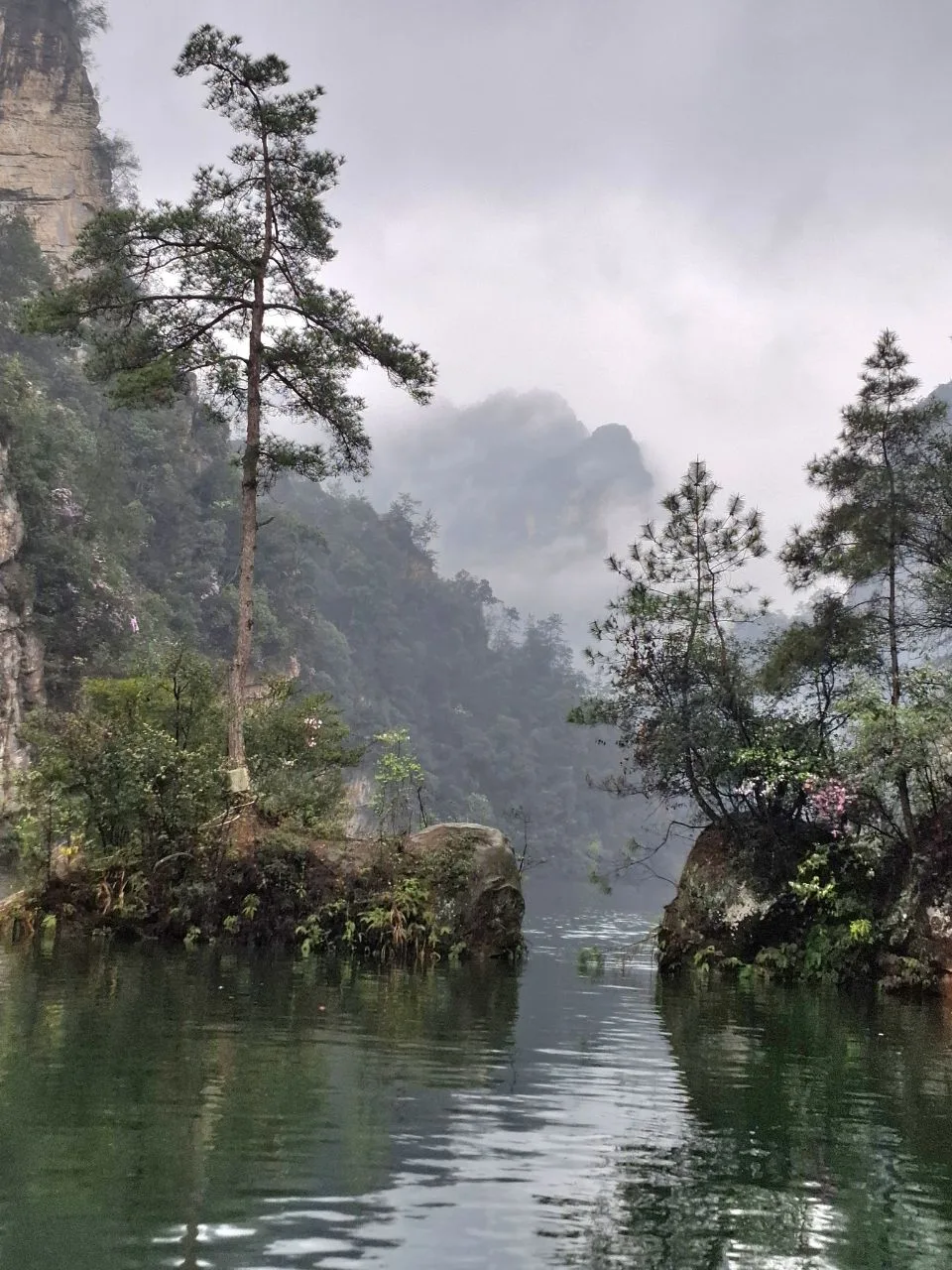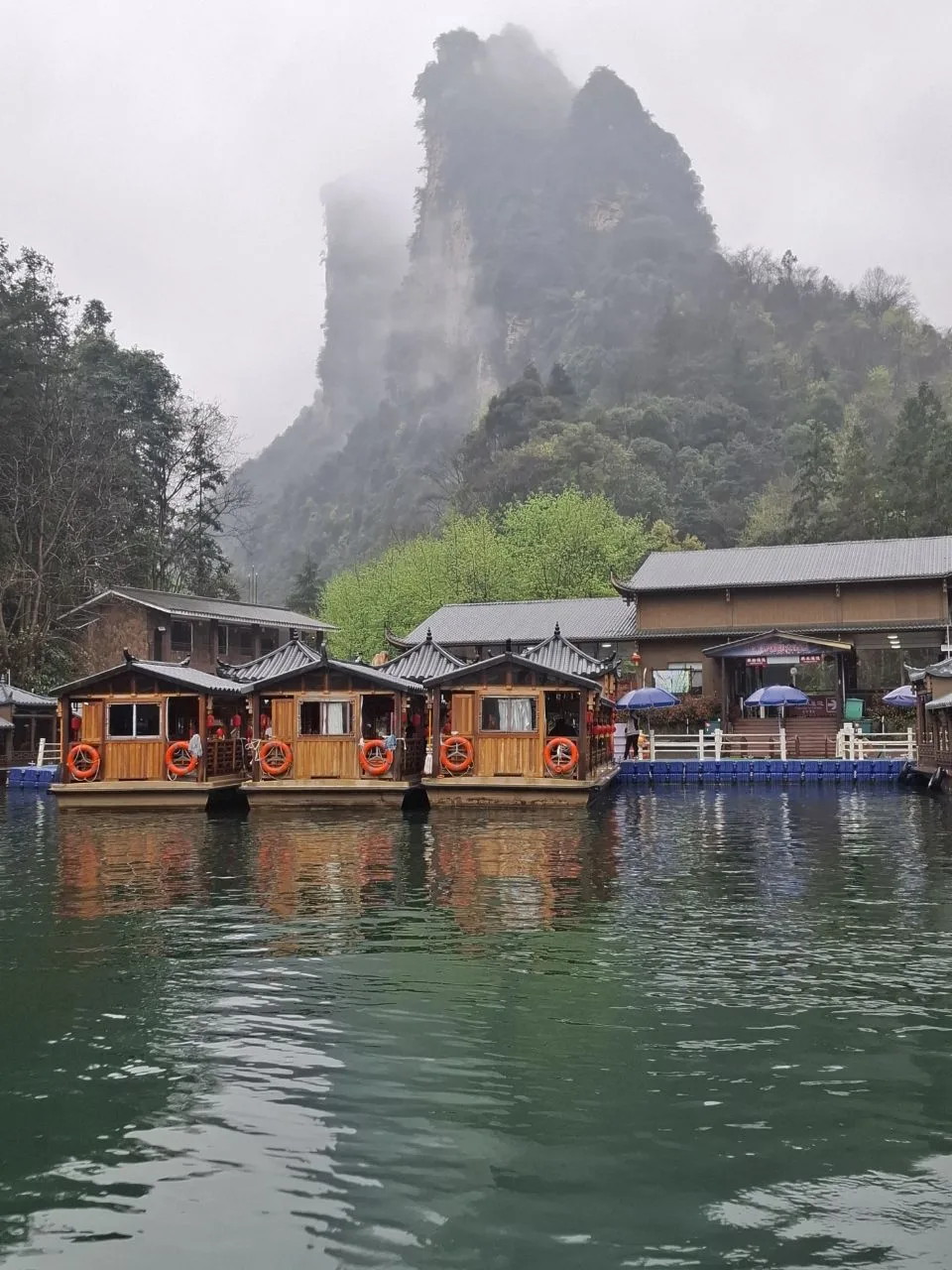 📍Улинъюань. Озеро Баофэн (Baofeng Lake) - живописное горное озеро в паре километров от центра «деревни». Местные жители называют его «озером, спящим в горах». Очень красивое! 😍 Особенно в такую дождливую погоду, как сегодня.