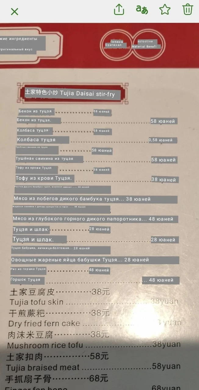 Перевод меню традиционно восхитил. «Старые снежинки»?? «Овощные жареные яйца бабушки Тцзя»? 😂