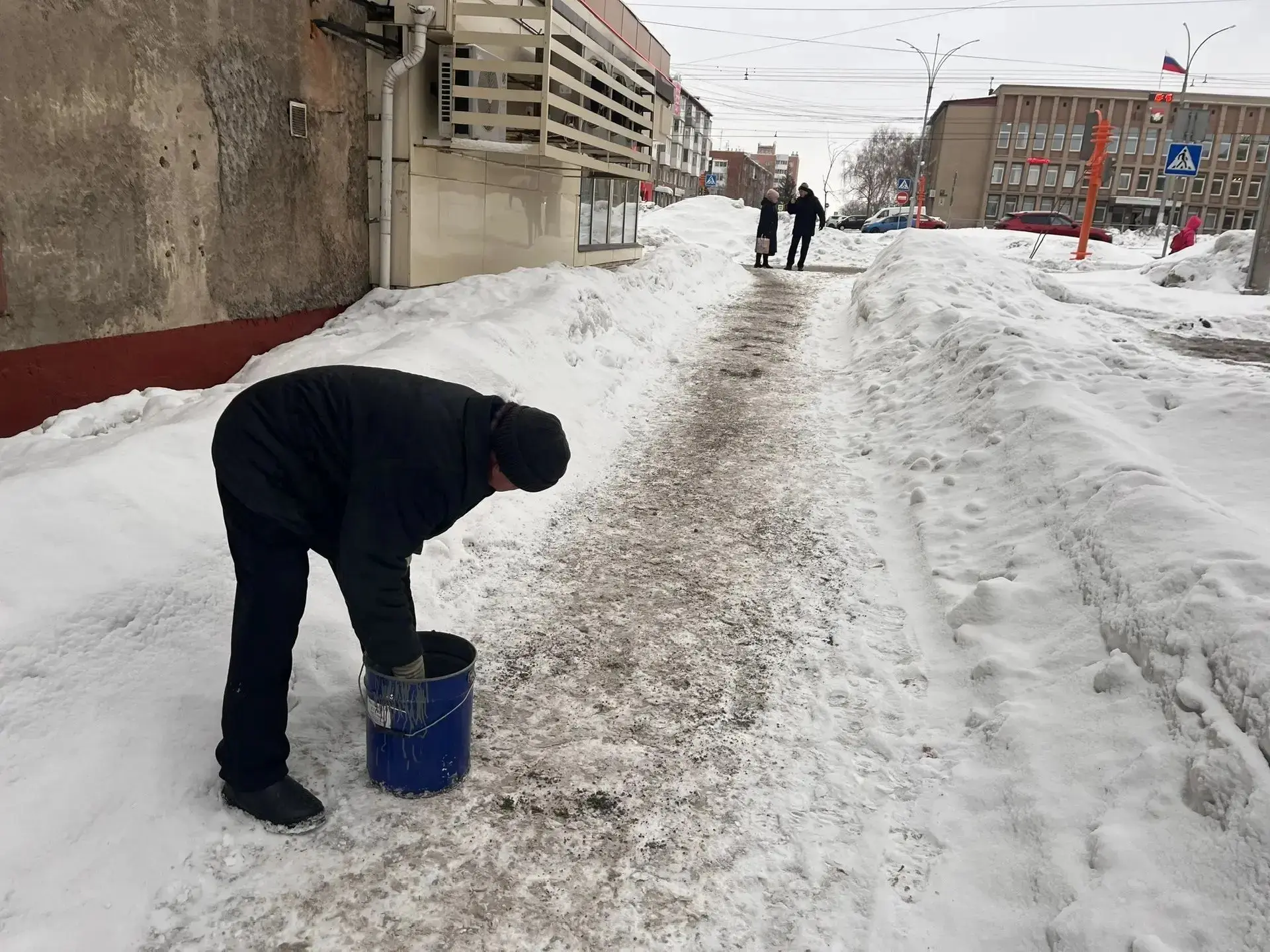 Отдельная задача для управляющих компаний - оперативнее срабатывать и в случае появления гололёда сразу же посыпать скользкие места.