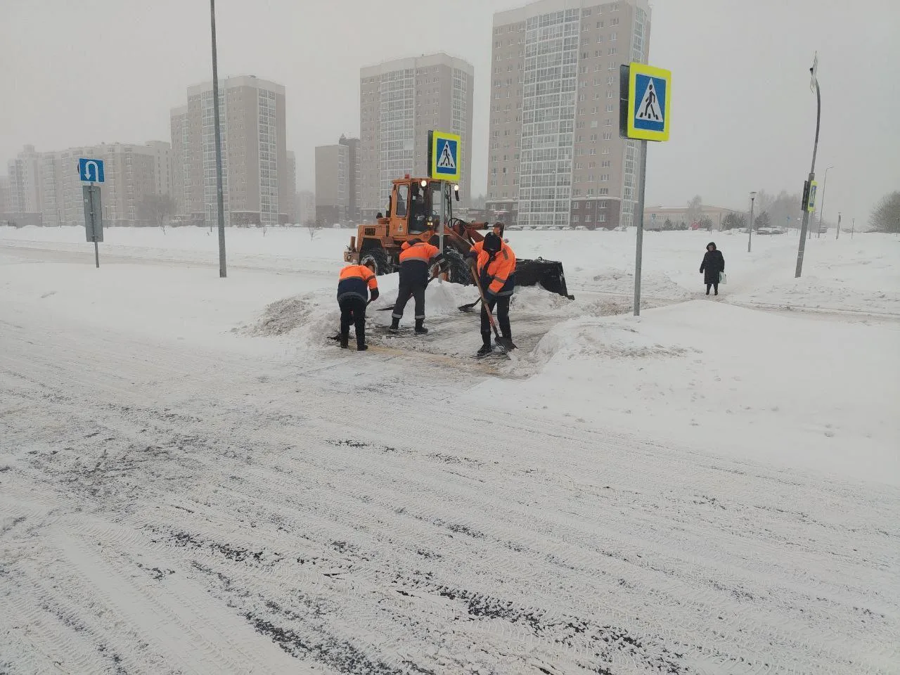 Круглосуточно продолжаем убирать дороги, тротуары, остановки и переходы. Дорожные предприятия обрабатывают проблемные участки реагентами.