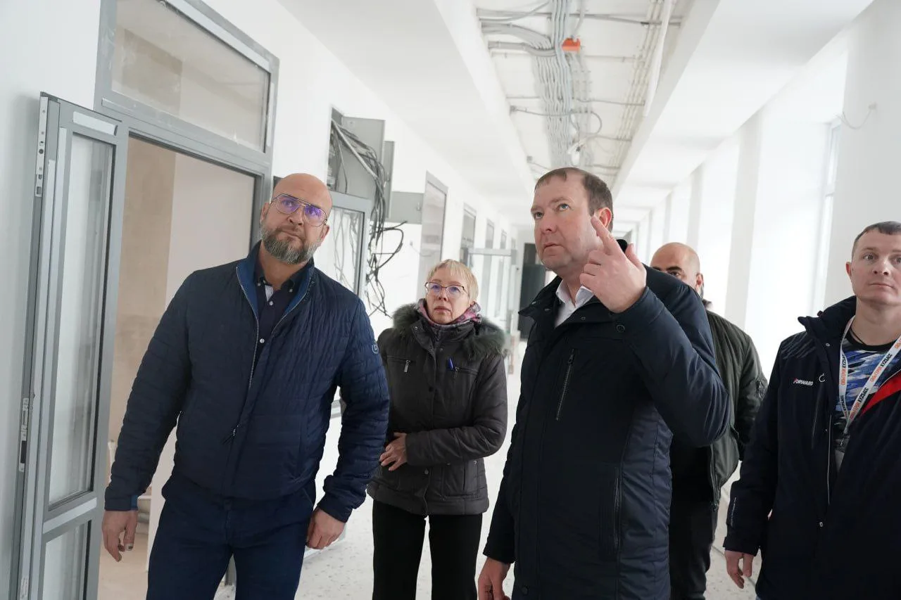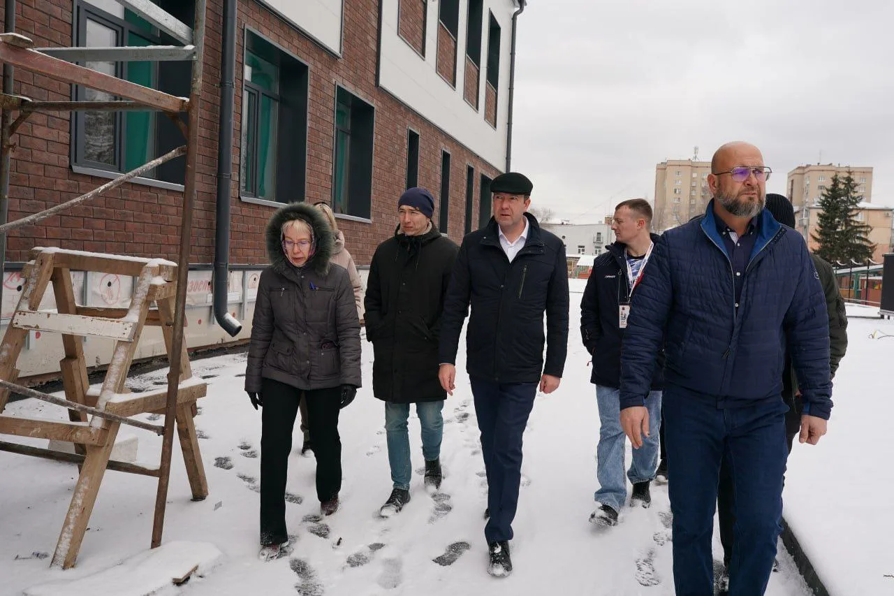 Осмотрели здание школы №54 с детским садом в Плешках, где завершается капитальный ремонт