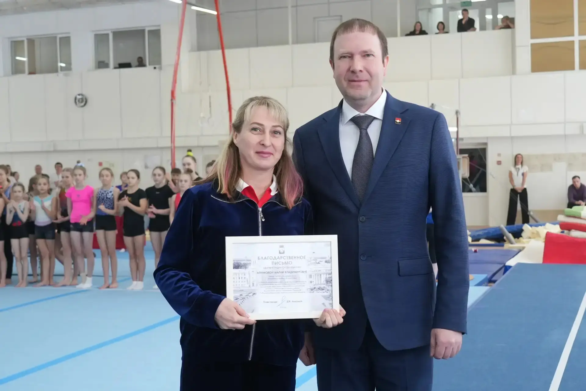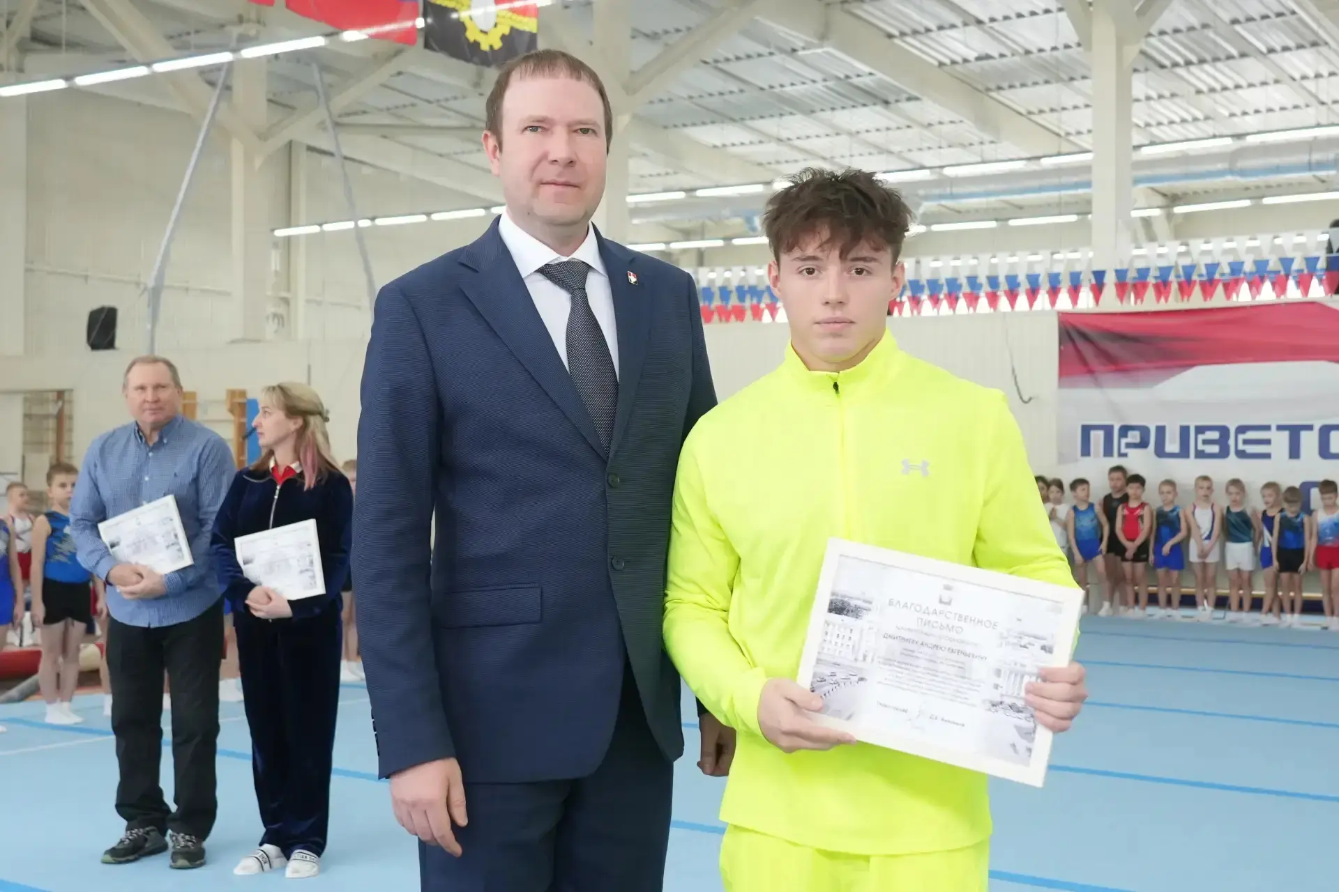 Вместе с олимпийским чемпионом Вячеславом Ивановичем Иваненко, чьё имя носит манеж, и губернатором Кузбасса Ильёй Владимировичем Середюком, при поддержке которого спортивный объект получил вторую жизнь, приняли участие в этом торжественном событии.