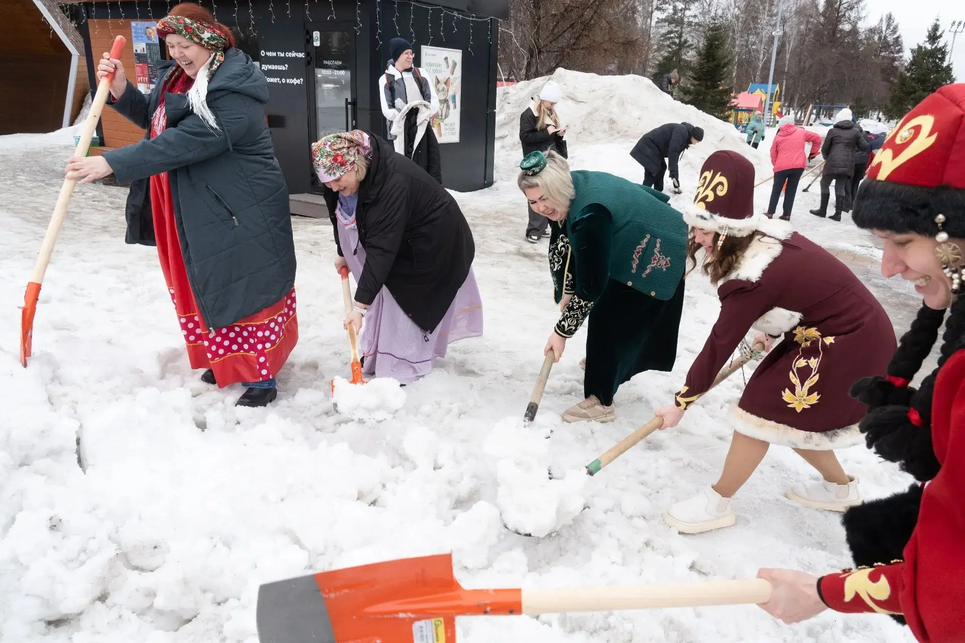К борьбе со снегом привлекли и коммерческие организации, магазины, торговые центры.