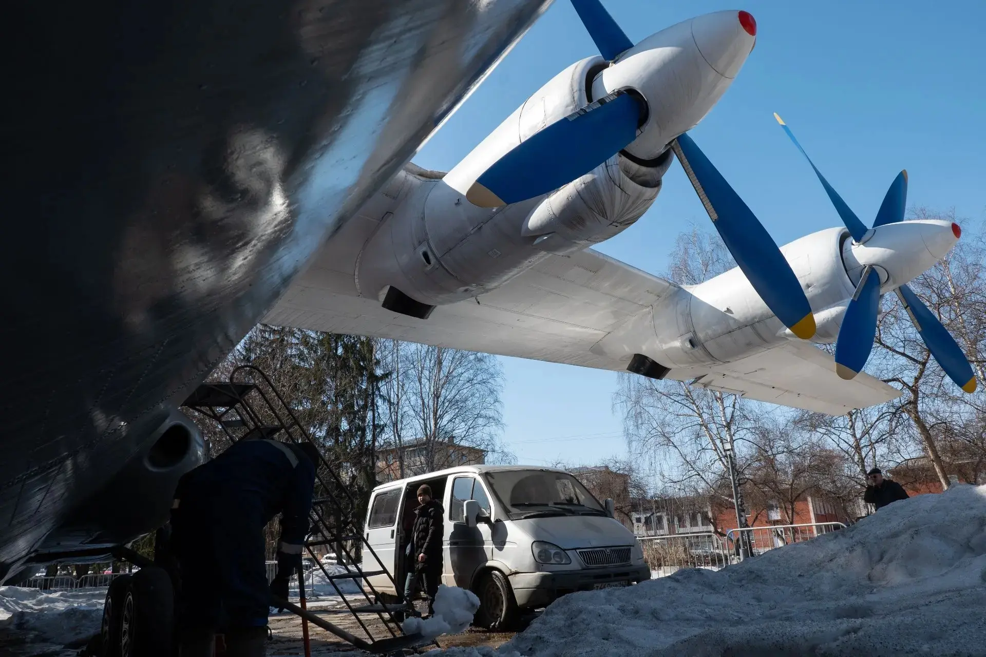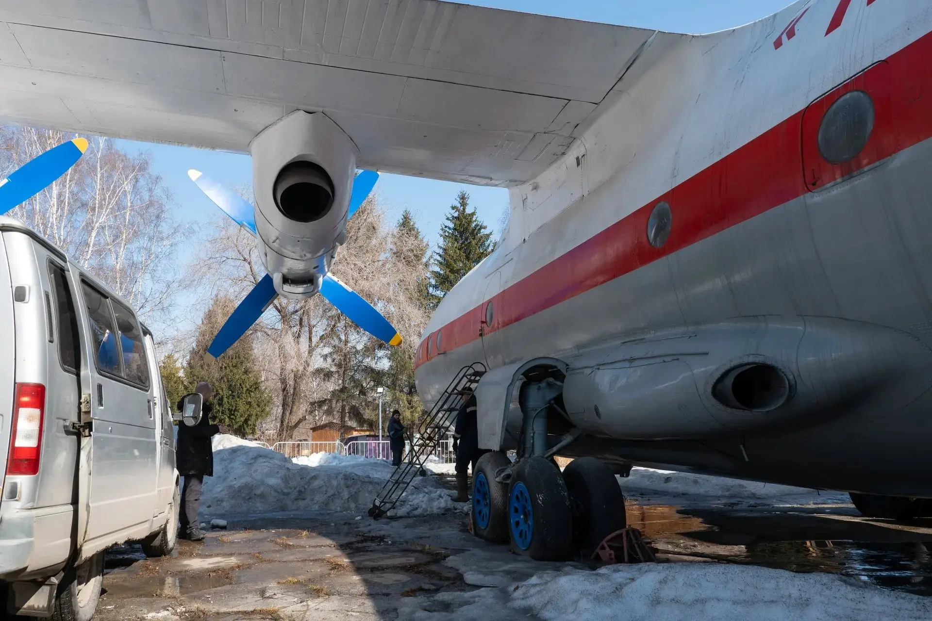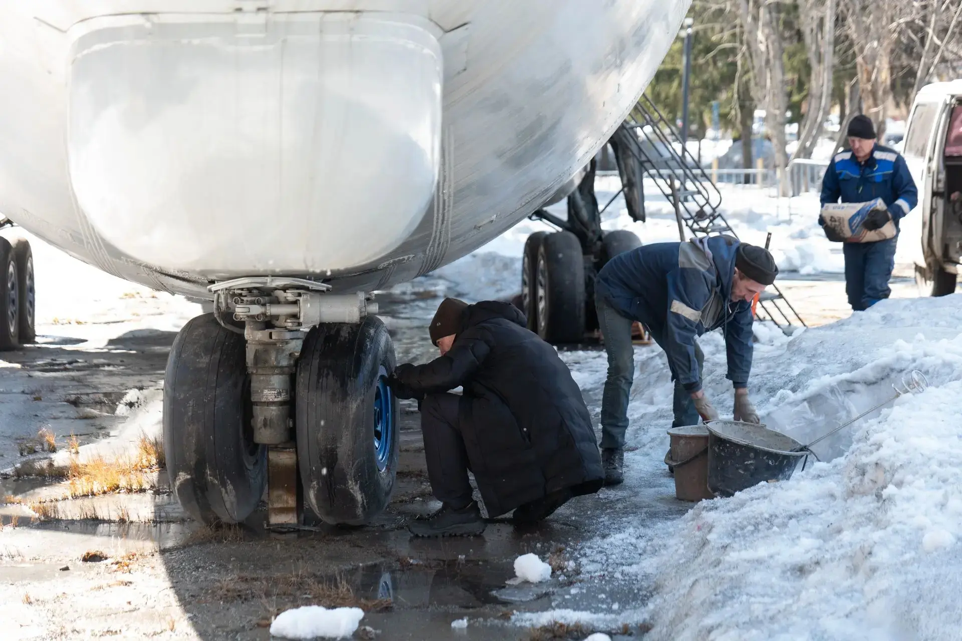 Самолёт необходимо выровнять и стабилизировать, а затем закрепить в этом положении - этим сейчас занимаются специалисты. Уже выполнили фиксацию передней оси. Внутри завершили демонтаж обшивки.