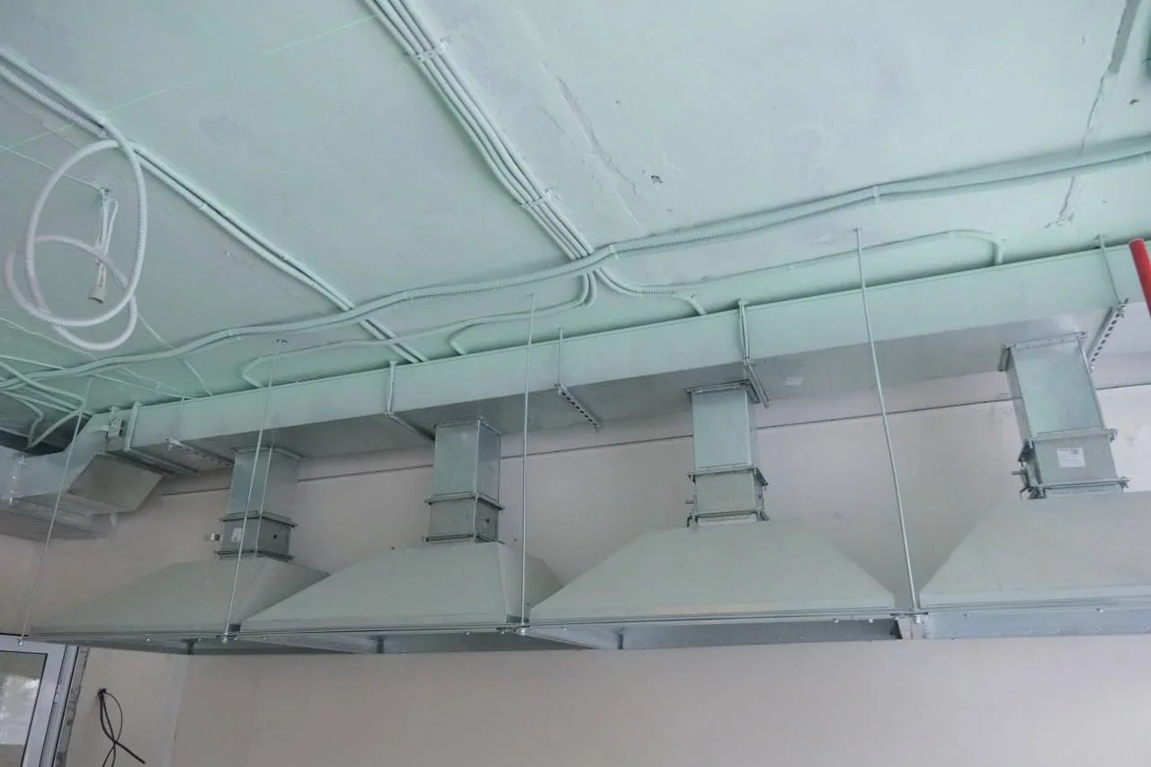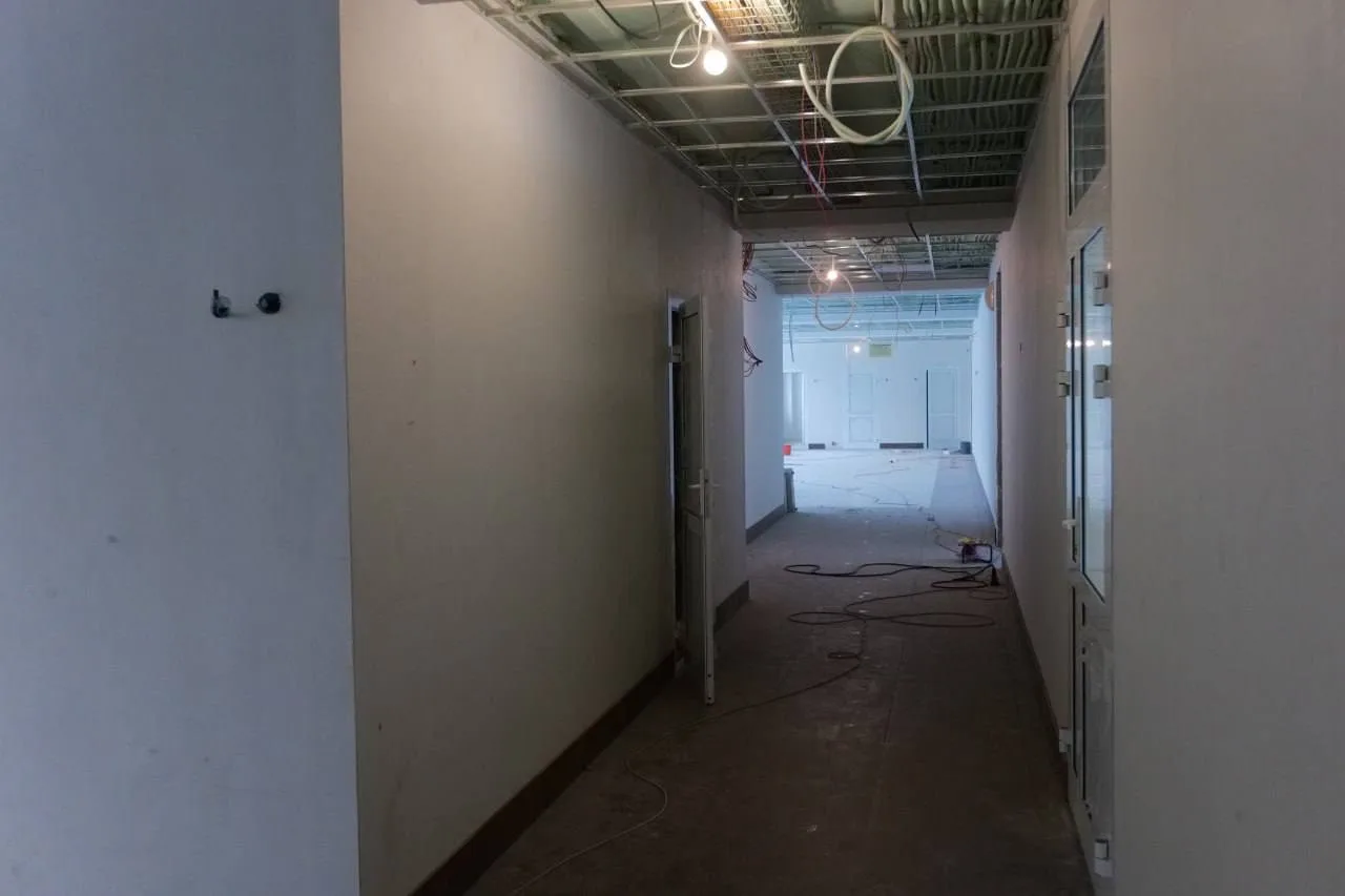 Сейчас вся активность строителей сосредоточена на подготовке внутренних помещений – работы идут в учебных классах, актовом зале, на пищеблоке и в спортивном зале. Продолжается монтаж электрики и вентиляционных систем.
