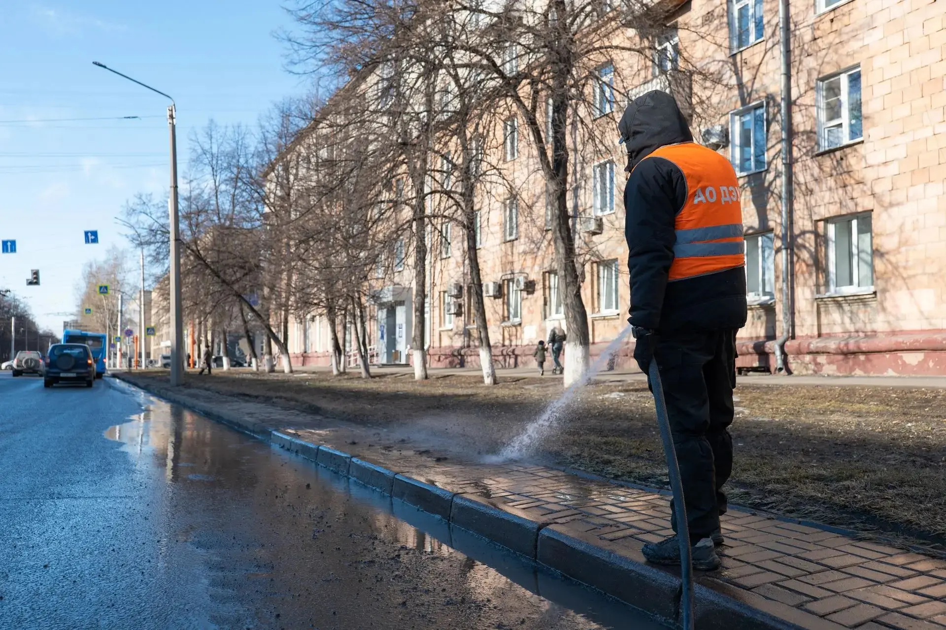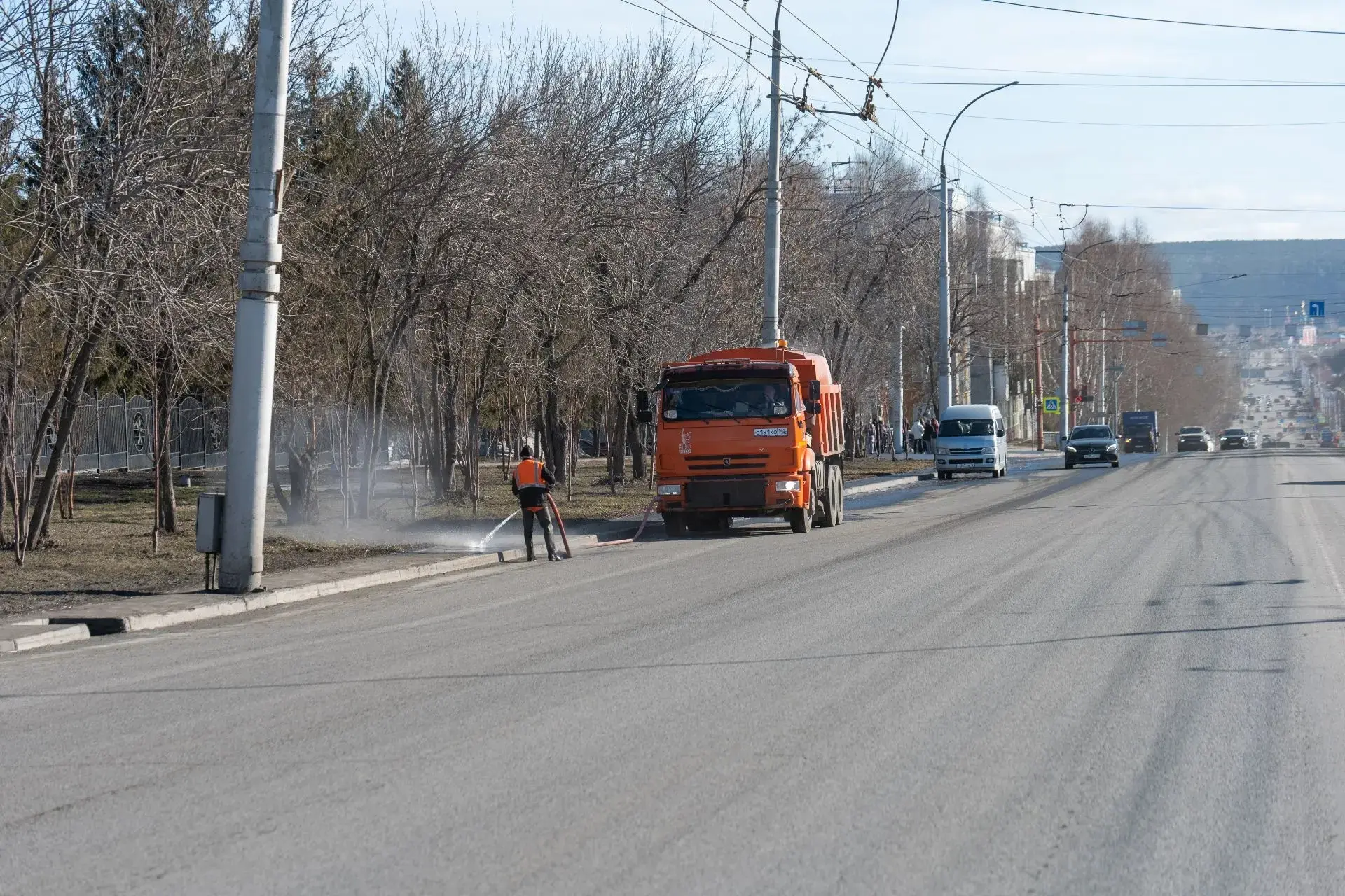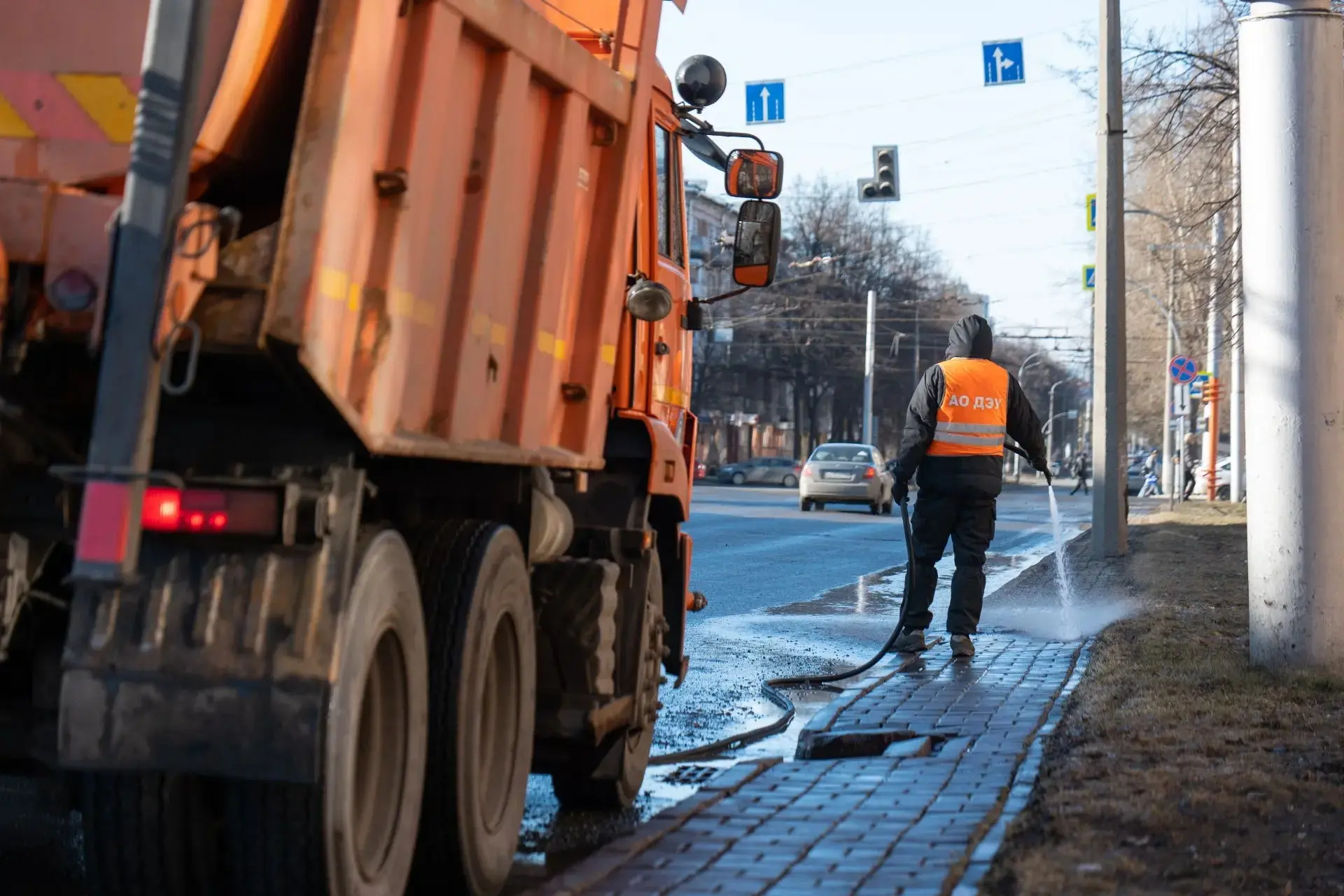 Ежедневно максимально задействуем спецтехнику и бригады дорожников. Промываем дороги и технические тротуары, вручную и с помощью пылесосов приводим в порядок прилотковую часть, парковки и заездные карманы, очищаем от пыли и мусора пешеходные зоны во всех районах города.