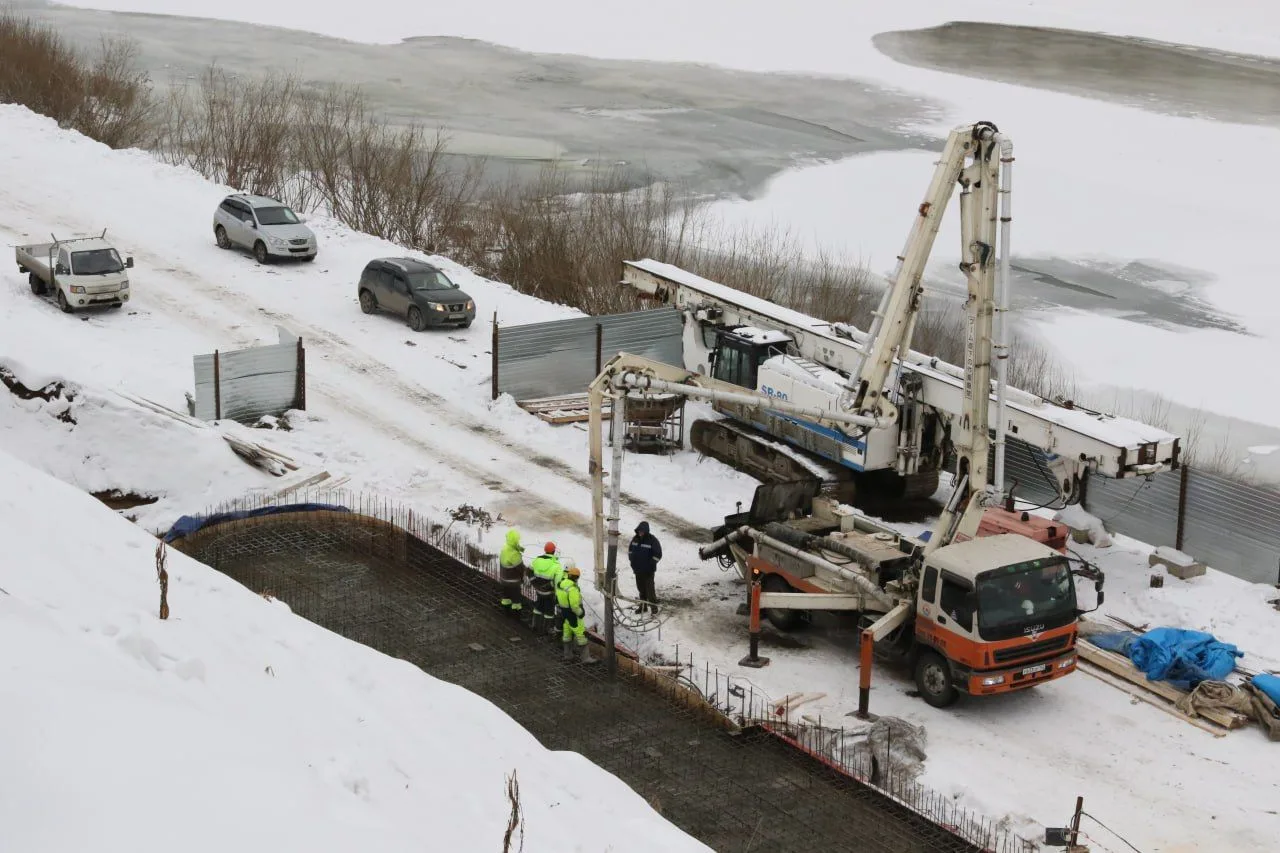 Приступили к устройству фундамента для будущей центральной лестницы на исторической набережной Томи