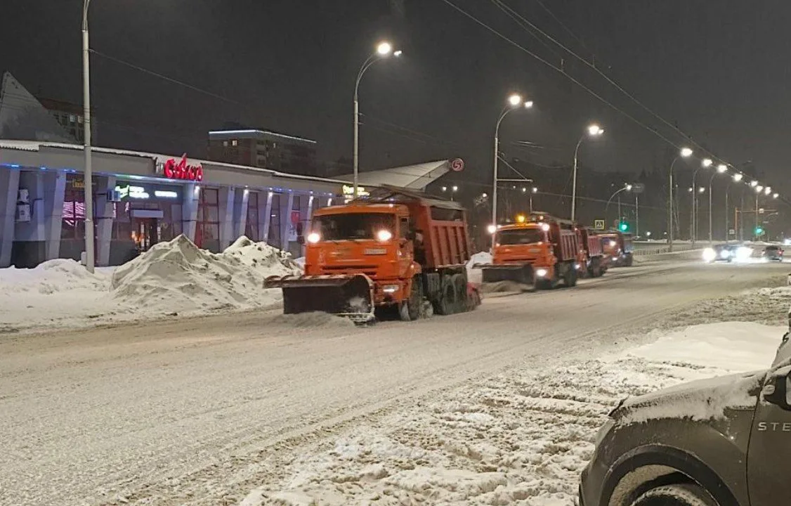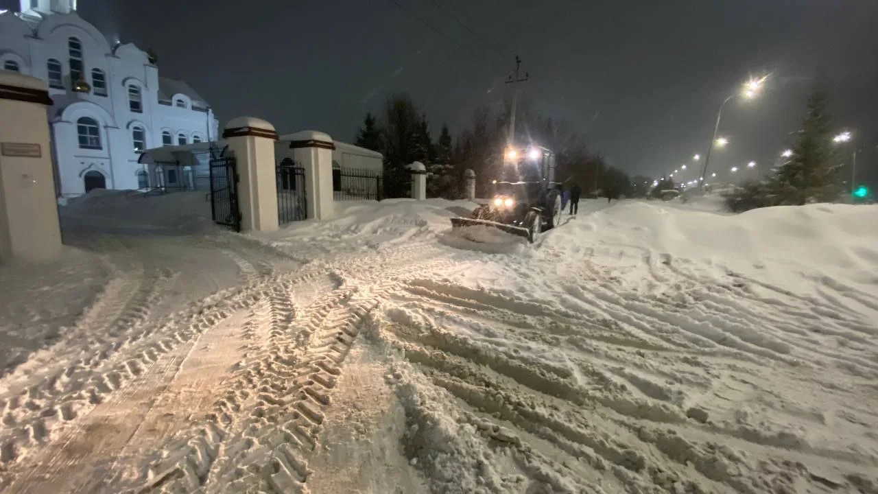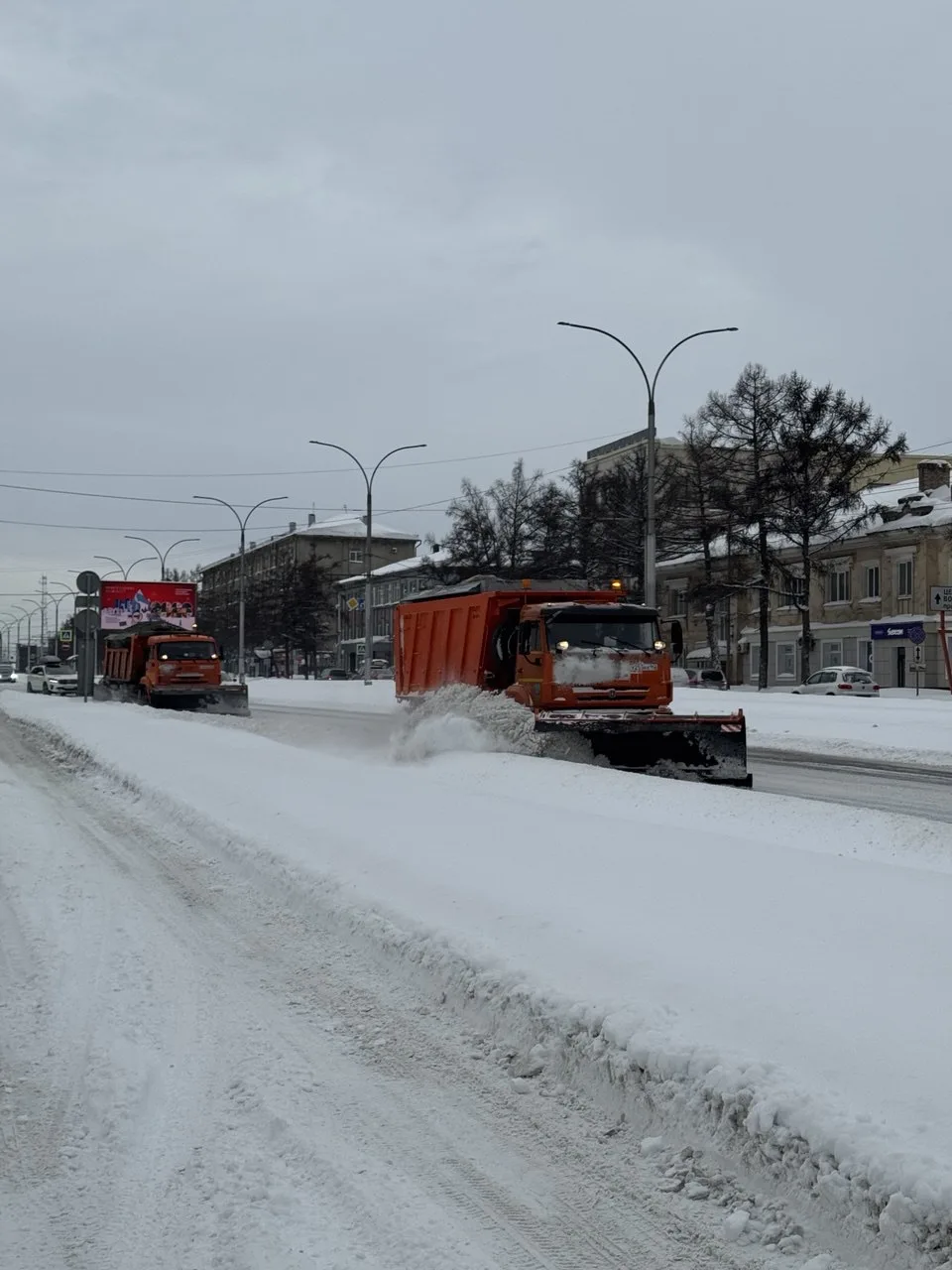 Ночью техника прошла по всем районам, утром продолжаем уборку.
