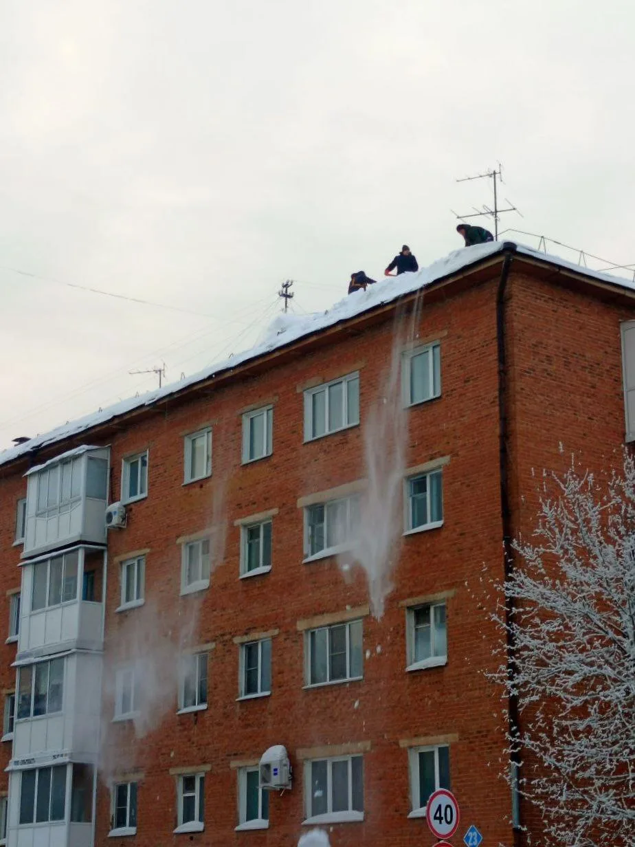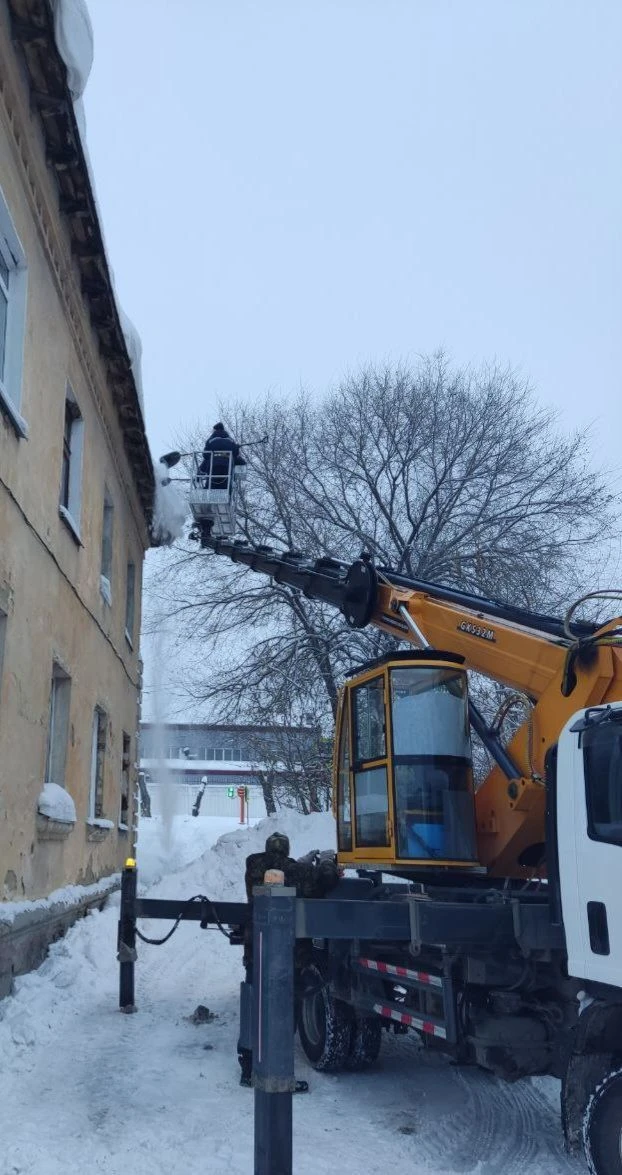 Продолжаем работу по очистке кровель зданий от снега и наледи