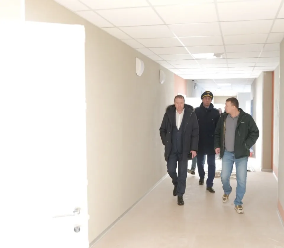 Сейчас завершаются чистовая отделка, монтаж электросетей и слаботочных систем, ведутся работы по входным группам и пищеблоку. Общий процент готовности объекта — 80%.