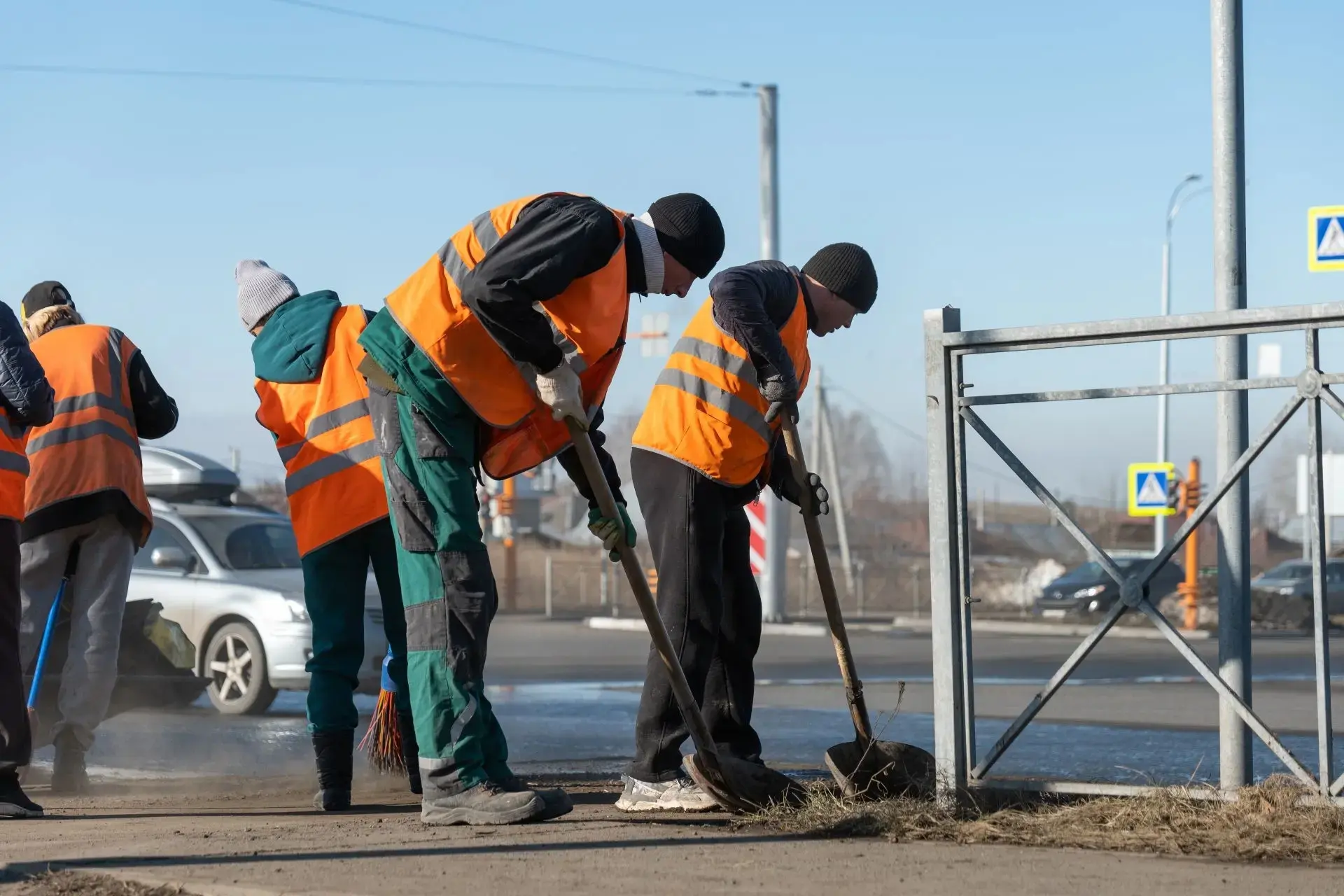 Как и договаривались, привлекаем в помощь дорожникам бригады работников кемеровских предприятий. Вчера сотрудники управляющих компаний занимались ворошением снега и уборкой вытаявшего мусора, а транспортники очистили 28 остановочных павильонов.