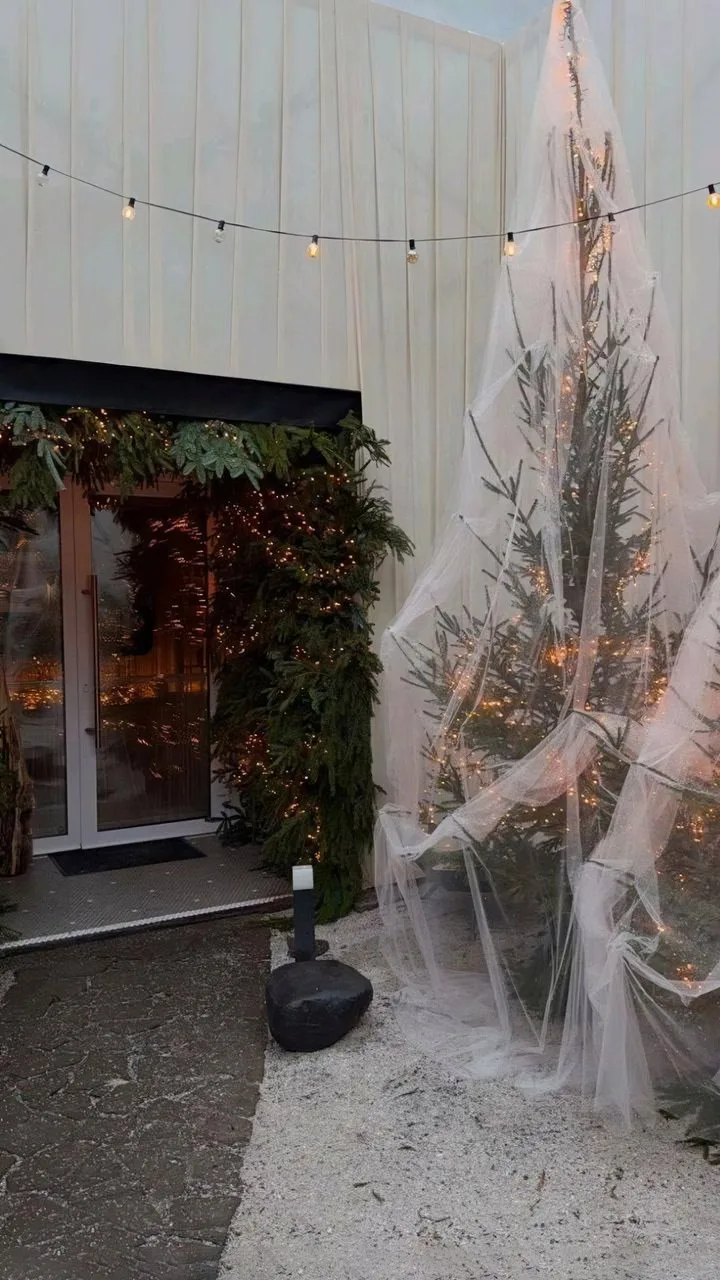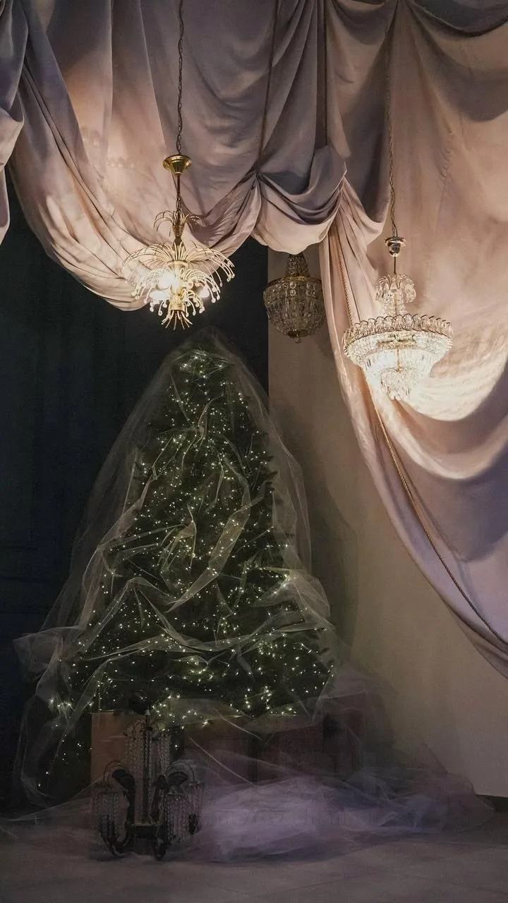 Ёлку украшают как обычно, но сверху вместо мишуры накрывают её лёгкой полупрозрачной вуалью, как у невесты.