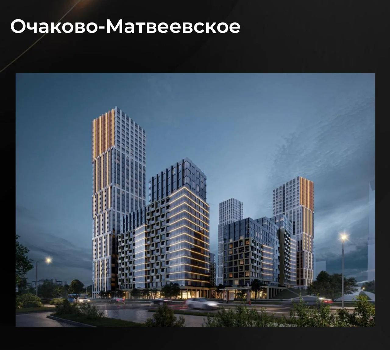 ✅ ЖК в районе Очаково-Матвеевское — задворки ПИКовского проекта Новое Очаково, входящего в Матвеевский кластер. В 20 мин. от метро и МЦД «Аминьевская». Максимальная высота — 39 этажей.