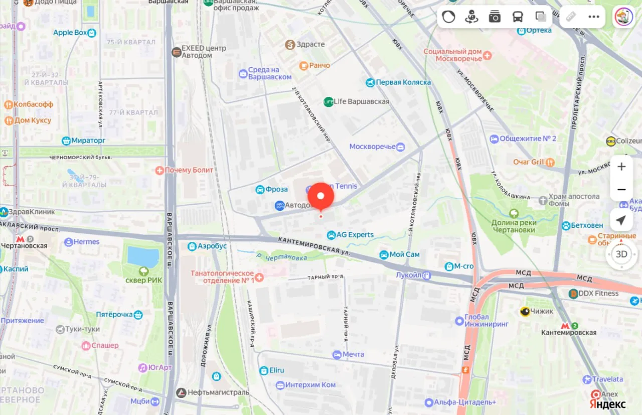 ✅ ЖК в районе Москворечье-Сабурово между станциями «Чертановская» (25 мин. пешком) и «Варшавская». Высота домов — до 45 этажей.
