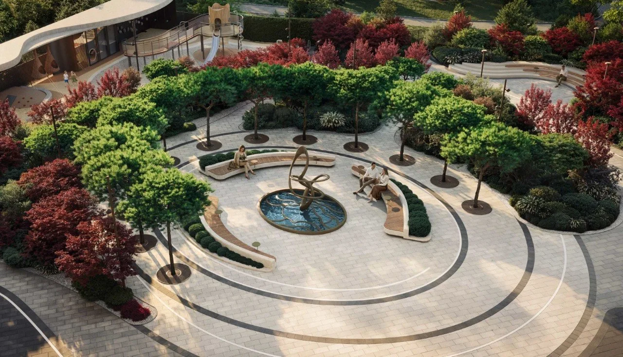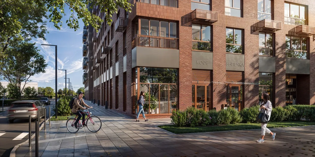 Снаружи — благоустройство, велодорожки, парковки с зарядками для электромобилей