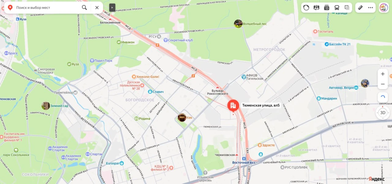 ВАО, район Гольяново. Рядом МСД, Щелковское шоссе и Восточный вокзал. До метро «Черкизовская» 10 мин. пешком.