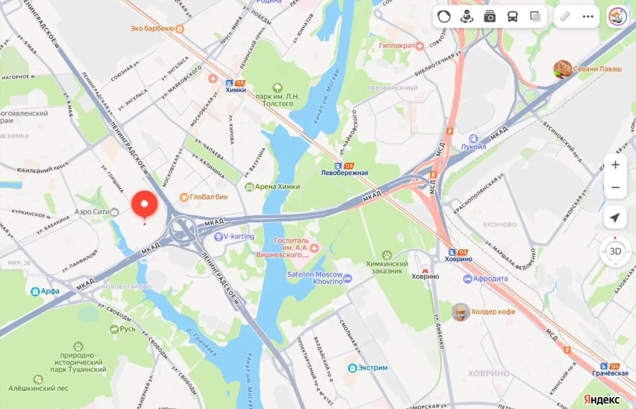 Главный плюс локации — близость к Москве. За счёт расположения рядом со МКАД и Ленинградкой туда удобно будет добираться на машине. Рядом парк Долина реки Грачёвка и Тушинский парк. Минусы тоже очевидны: шумное соседство с магистралями и удалённость от метро и железной дороги. До станции МЦД-3 «Химки» пешком около 25 мин.