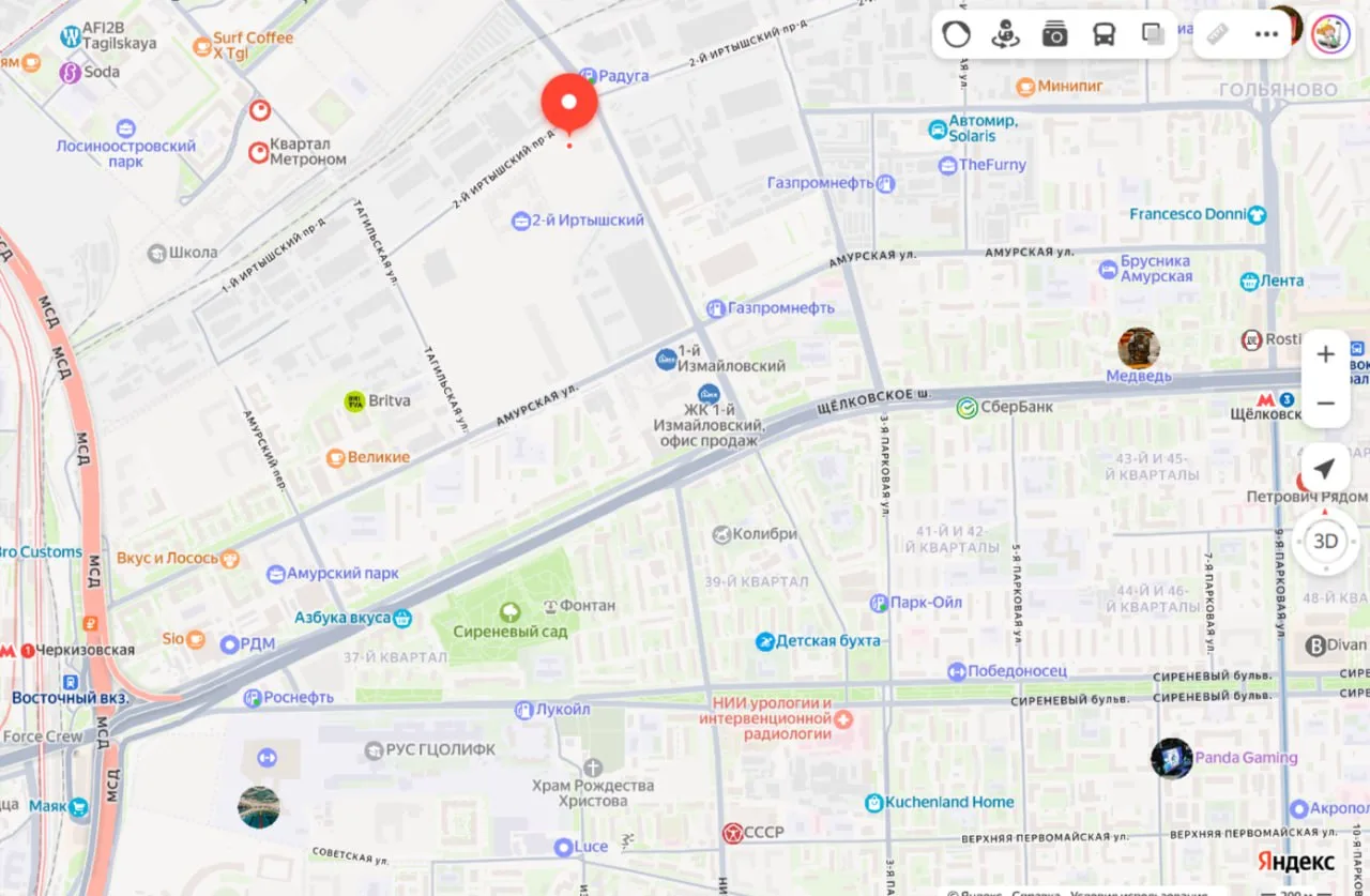 Рядом промка, железная дорога и ТЭЦ. В районе мощная конкуренция: 2-й Иртышский, Амурский парк и Лосиноостровский парк от ПИКа, Квартал Метроном от Брусники и 1-й Измайловский от 1-го ДСК.