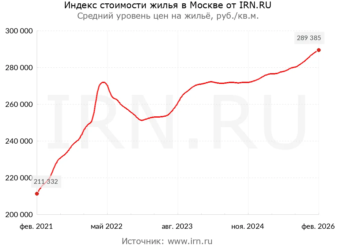 Однушка (41,5 кв. м) 22,7 млн руб. За месяц +1 млн руб. (+4,6%), за 11 месяцев +4,2 млн руб. (+22,7%). Отделка черновая, ключи в конце 2027.