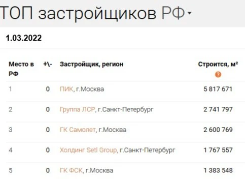 Ещё недавно ЛСР был в тройке лидеров по объёмам стройки, а из топ-10 России не выходил больше 10 лет. Но последние 2–3 года компания снизила обороты более чем в 2 раза и теперь скатилась уже на 12 строчку.