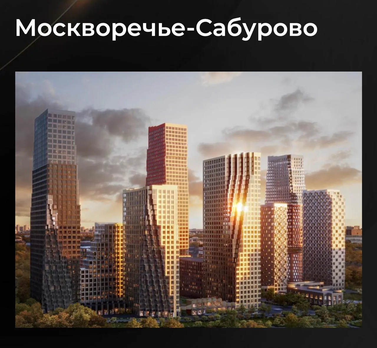 Квартал из 5 небоскребов бизнес-класса на северо-востоке Москвы в Бутырском районе. Высота башен от 19 до 58 этажей. В продаже все корпуса, завершение строительства запланировано на конец 2027 года.