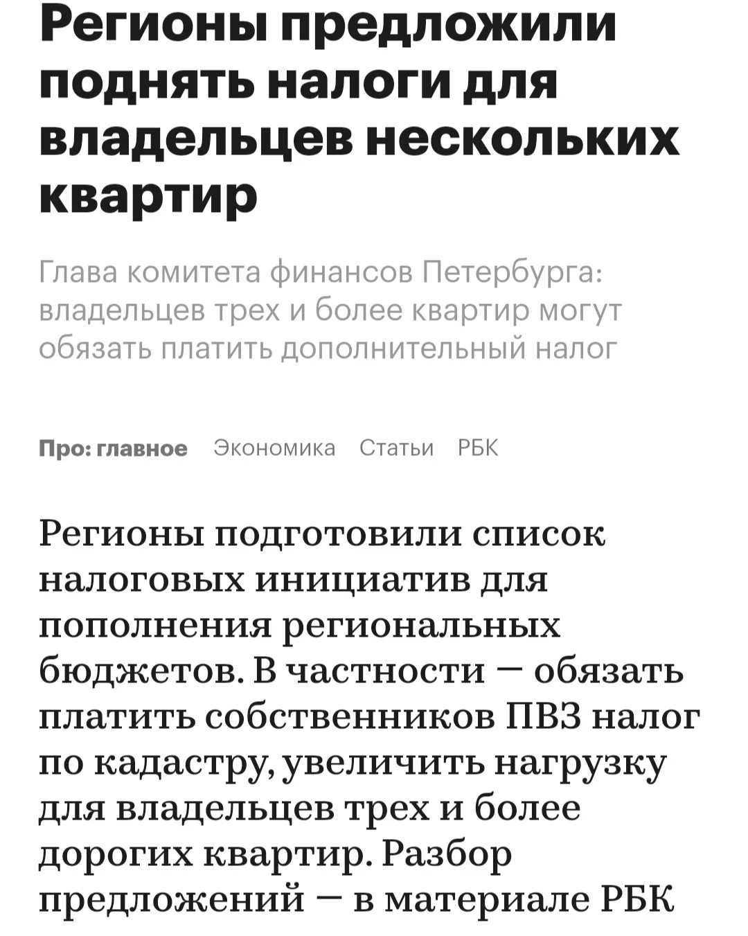 Приехали. Власти обсуждают новый налог для владельцев трёх и более квартир 🤯