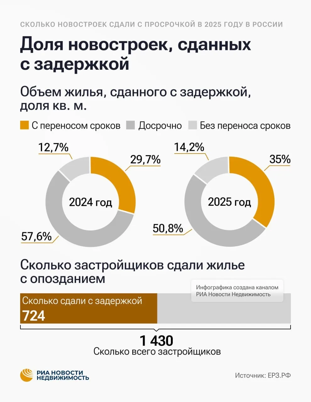 Впрочем, другие тоже «хороши». По стране 35% (!) всех домов вводят позже срока. Рост к прошлому году аж в 2 раза...