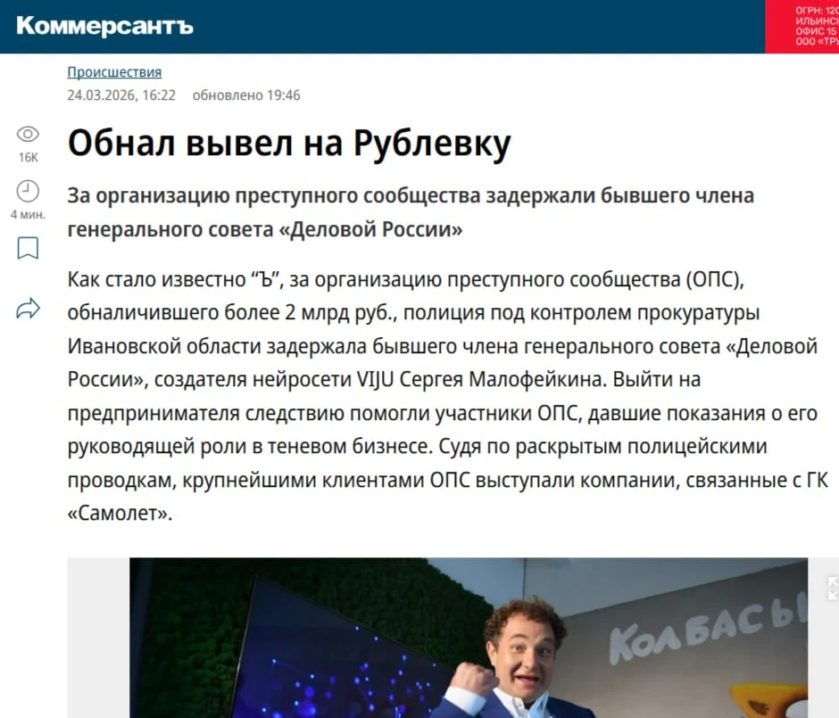 По данным следствия, его фирма занималась обналом в огромных масштабах. Подпольные банкиры вывели в тень более 2 млрд руб. А крупнейшими клиентами были юрлица Группы компаний Самолет.