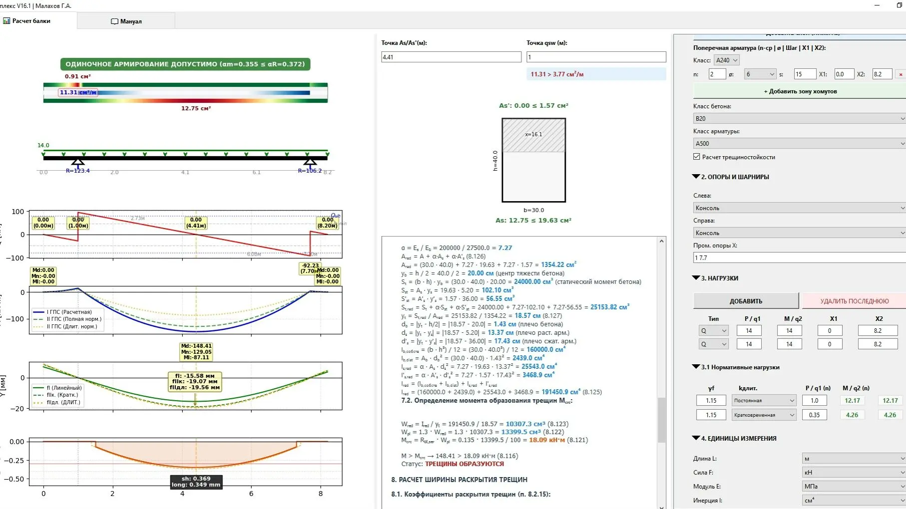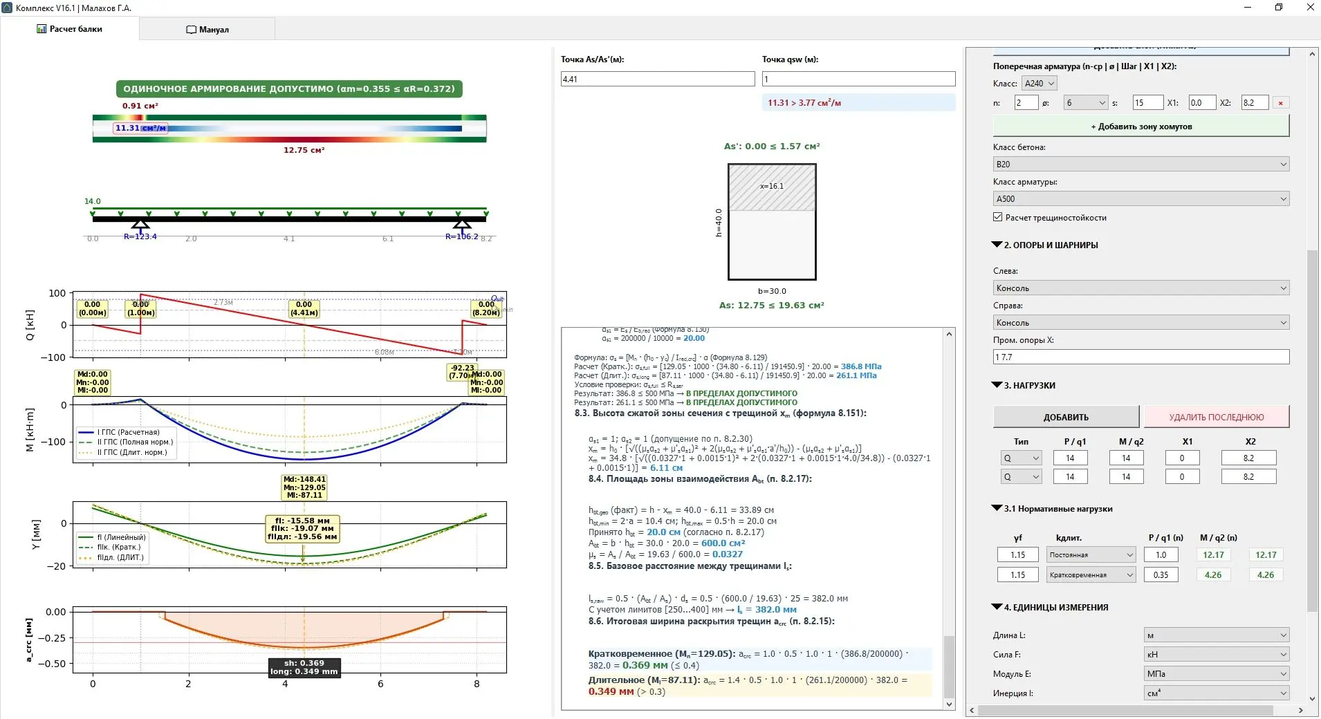 Признаюсь: намучался, пока заставил эти две системы работать как единое целое без малейших расхождений. Чтобы исключить ошибки, пришлось полностью перестроить логику расчета раскрытия трещин.